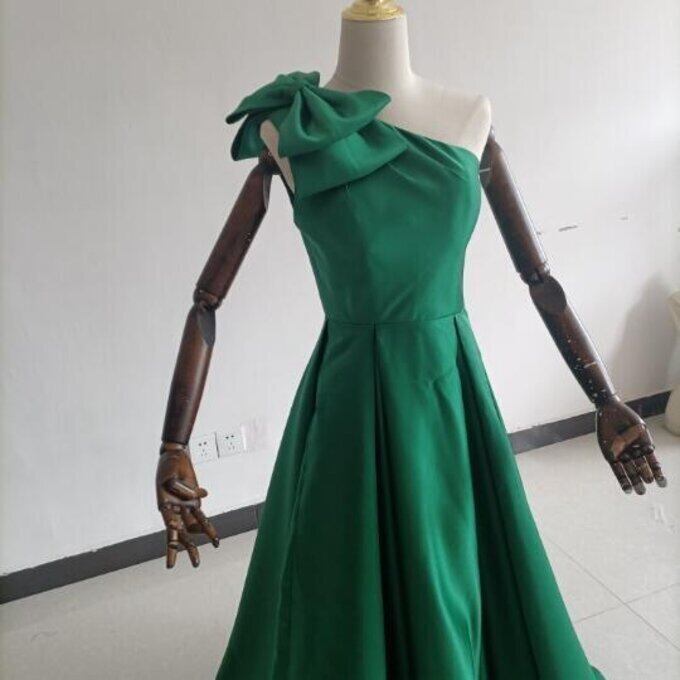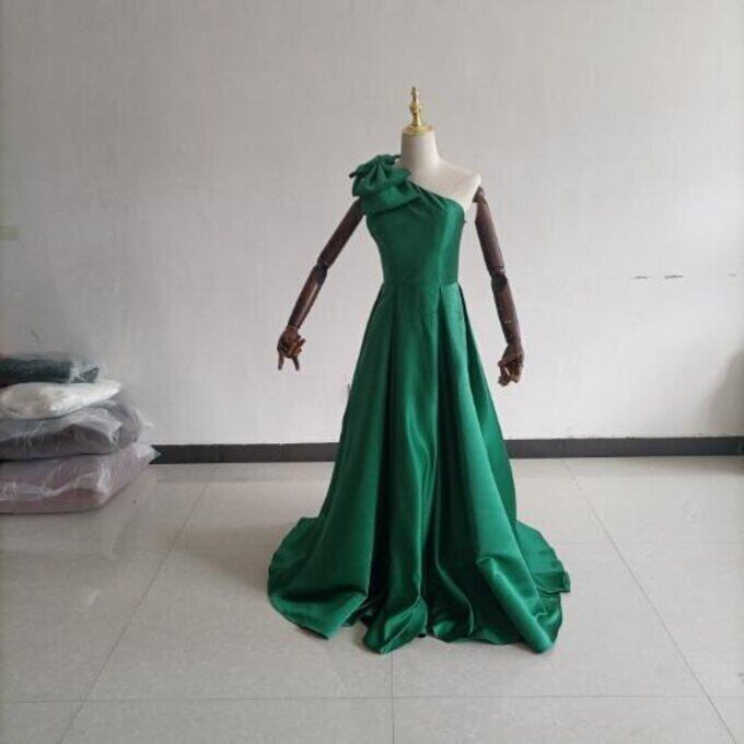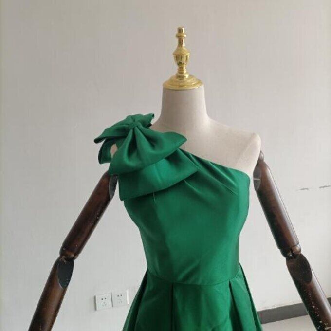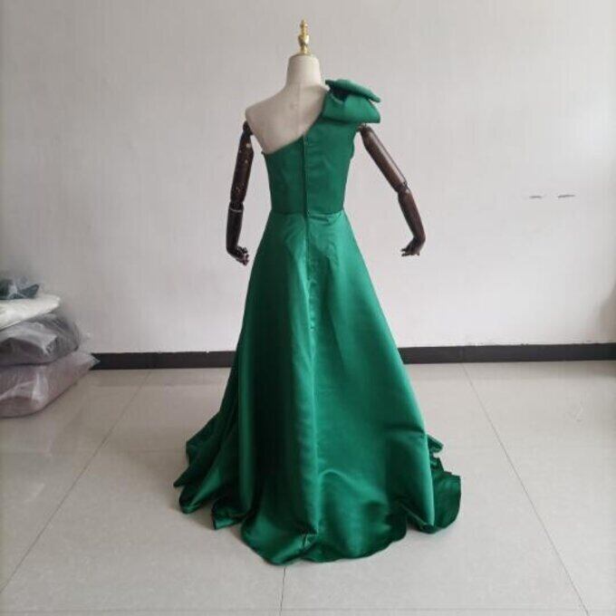 上品!パーティードレス 緑 ワンショルダー スリット プリンセスライン ロングドレス お呼ばれ/二次会