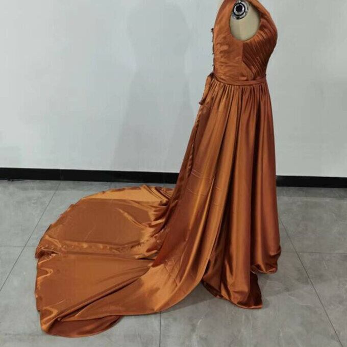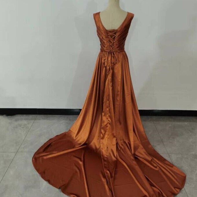 カラードレス テラコッタ色 優雅なシルエット フックタイプの編み上げ