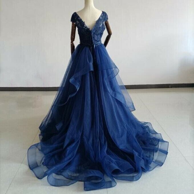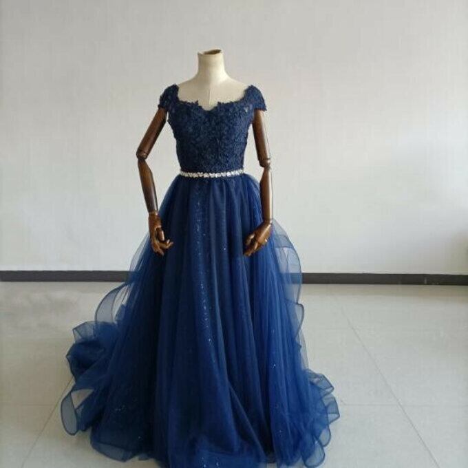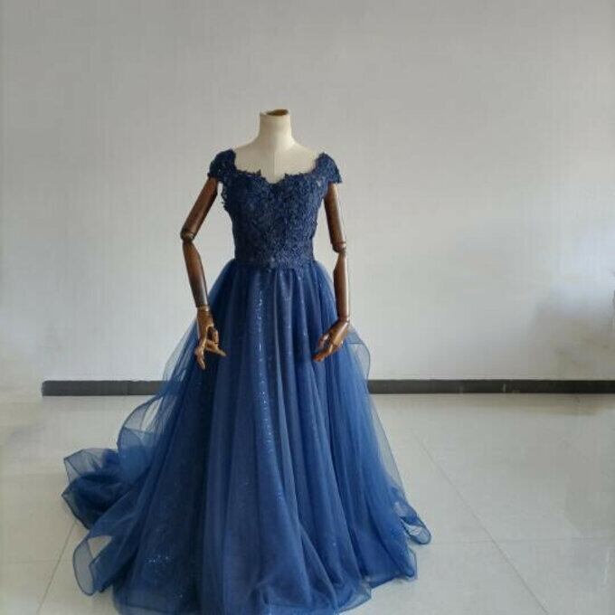 披露宴 可愛い 紺 カラードレス 花嫁 ソフトチュール