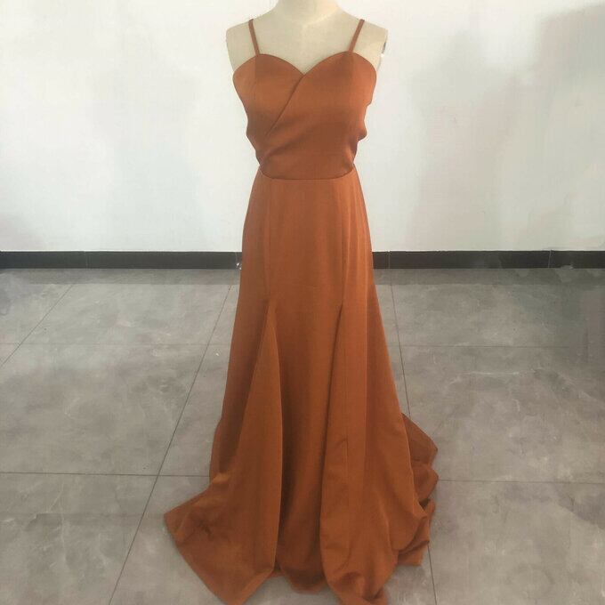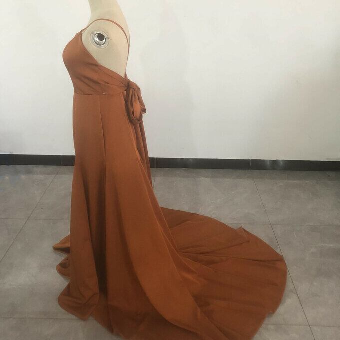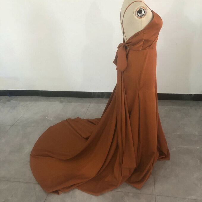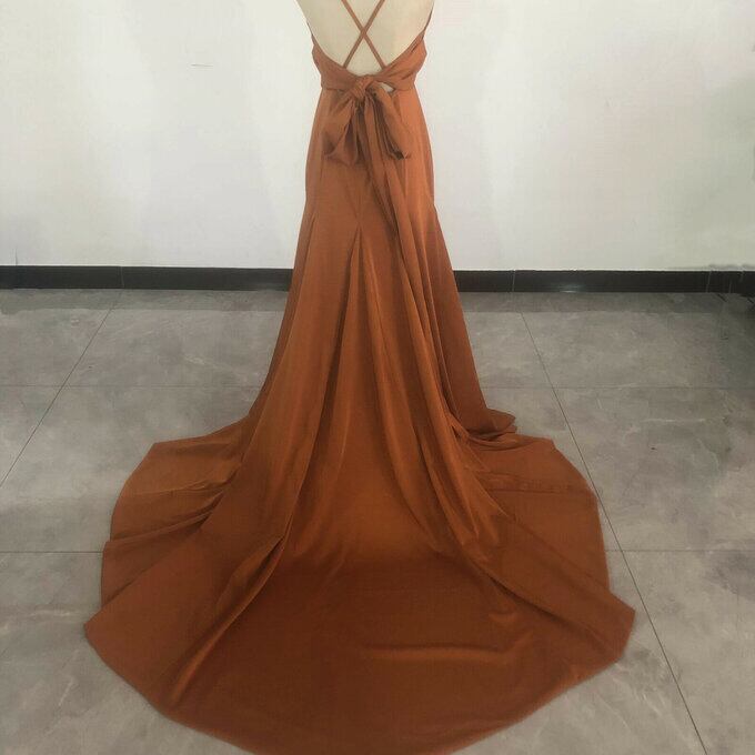 前撮りドレス カラードレス テラコッタ色 背中見せ ソフトマーメイド 結婚式 パーティードレス