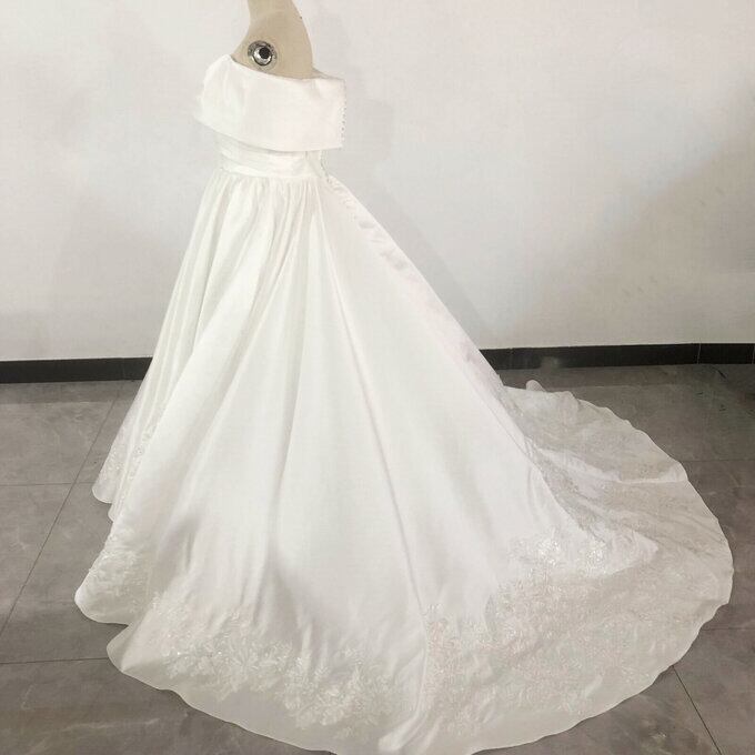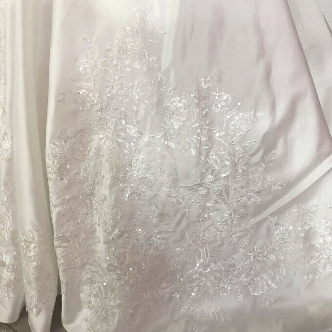 華やか ウェディングドレス 純白 高級刺繍 光沢サテン 憧れのドレス 花嫁/ウェディングドレス/ブライズメイド/結婚式/披露宴