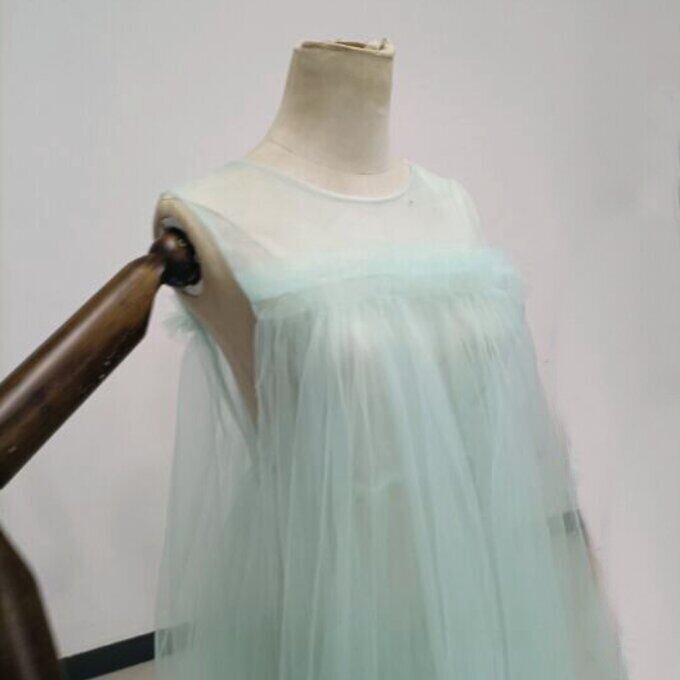 エレガント トップス 薄青 ソフトチュール お呼ばれ/二次会/2次会/合コン/デート/謝恩会/パーティー/