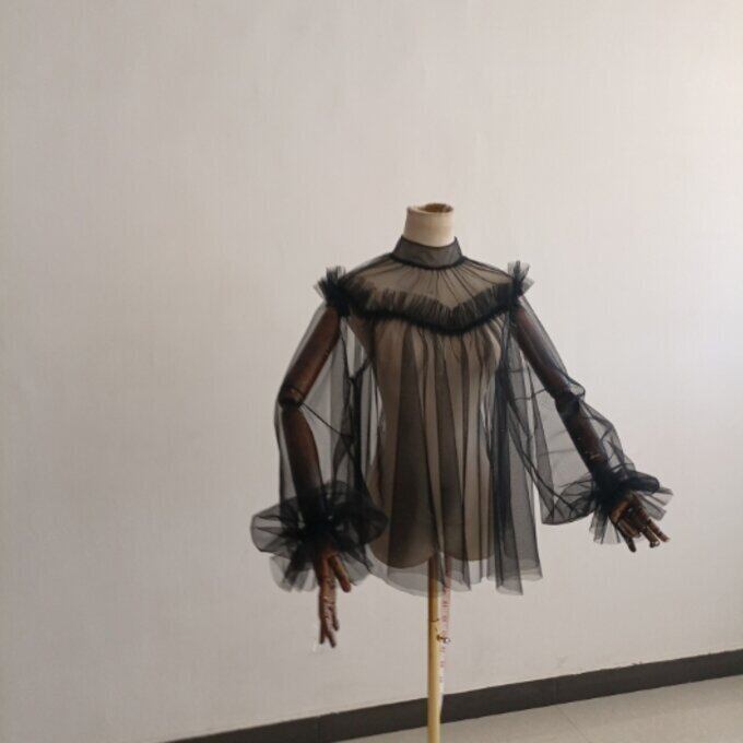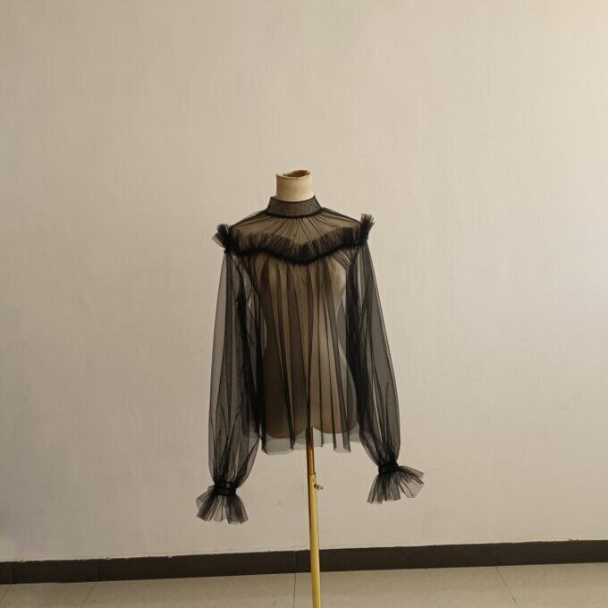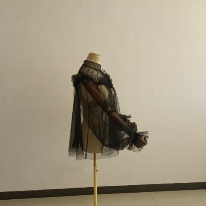 エレガント トップス 黒/ブラック ソフトチュール お呼ばれ/二次会/2次会/合コン/デート/謝恩会/パーティー/
