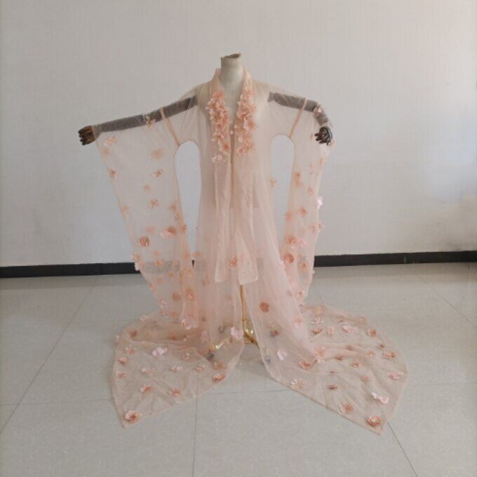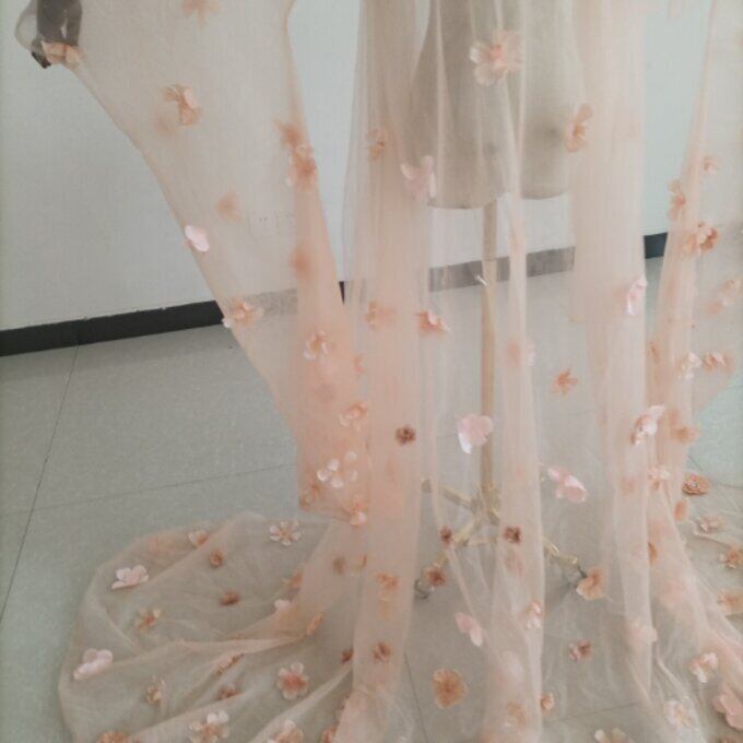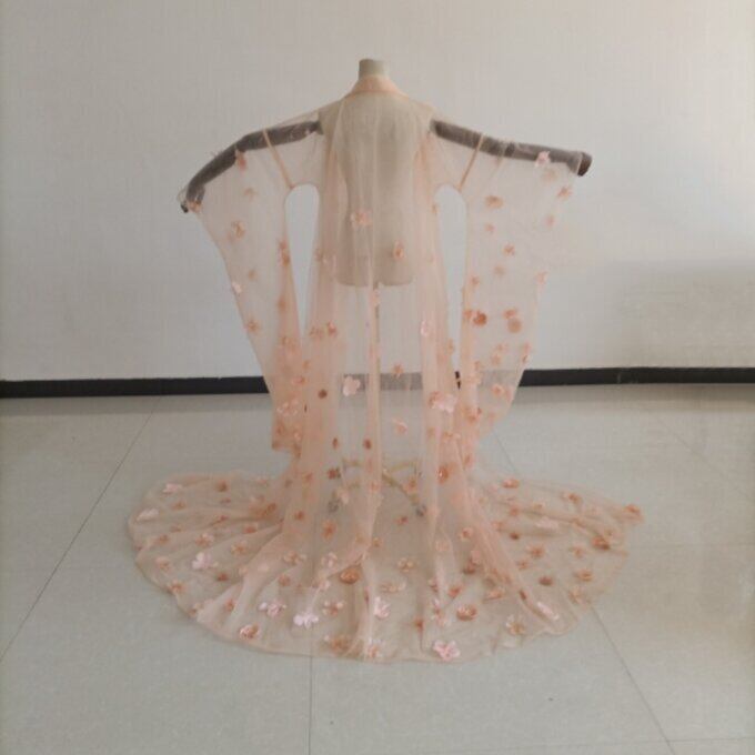 花柄のモチーフ刺繍が美しく オーバードレス マタニティ 薄ピンク 花嫁/ウェディングドレス/ブライズメイド/結婚式/披露宴/