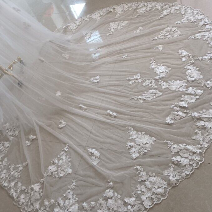 高品質! ロングベール ホワイト 高級刺繍 ソフトチュール 抜群のおしゃれ見え 花嫁/ウェディングドレス/ブライズメイド/結婚式/披露宴/