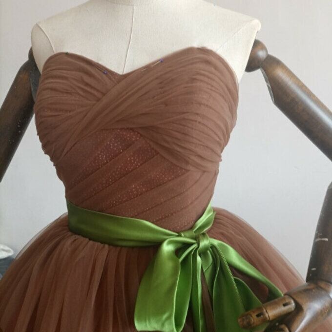クラシカル カラードレス コーヒーの色 ベアトップ フレアスカート 結婚式/披露宴/ 2次会 ビジュー