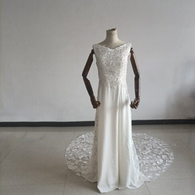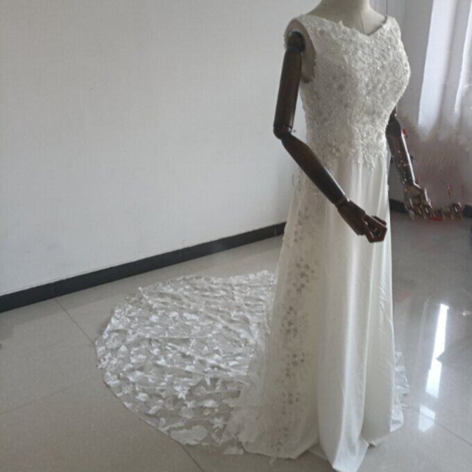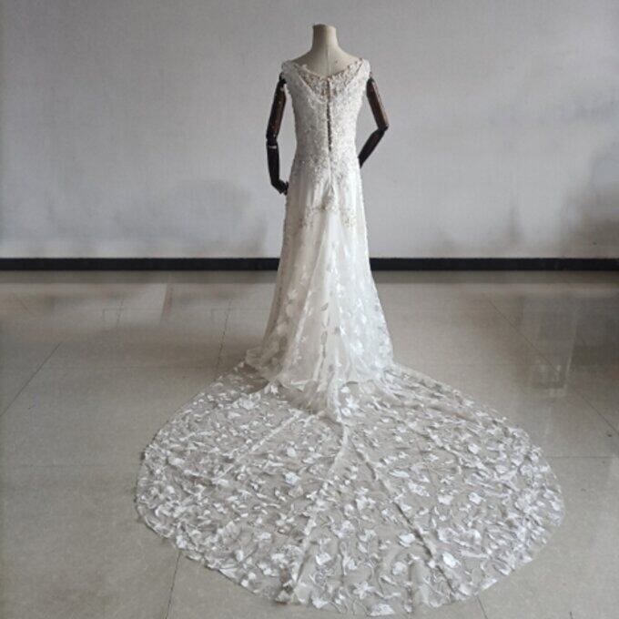 高品質! ウェディングドレス 高級刺繍 華やかなトレーン ホワイト 花嫁/ウェディングドレス/ブライズメイド/結婚式/披露宴/