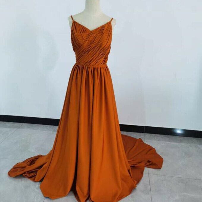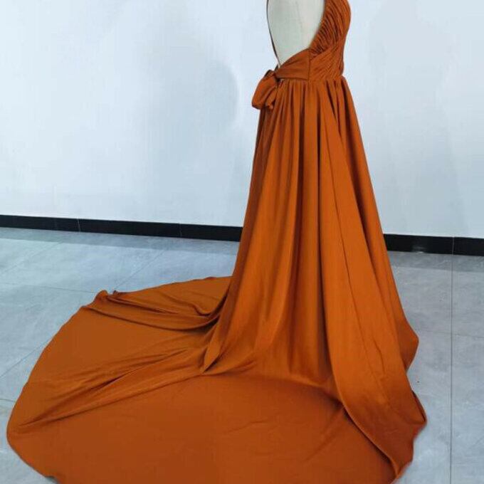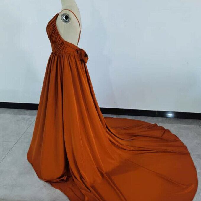 高品質 パーティードレス テラコッタ色 トレーン キャミソール バッククロス