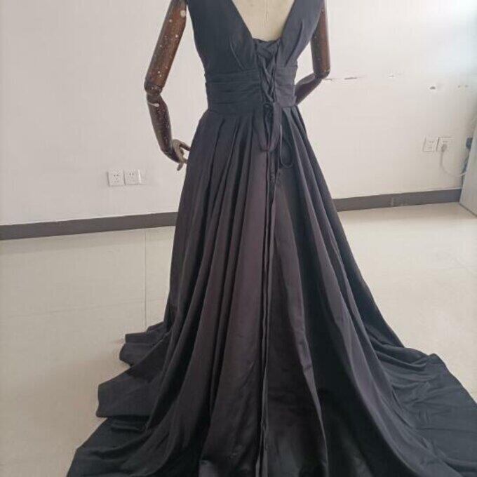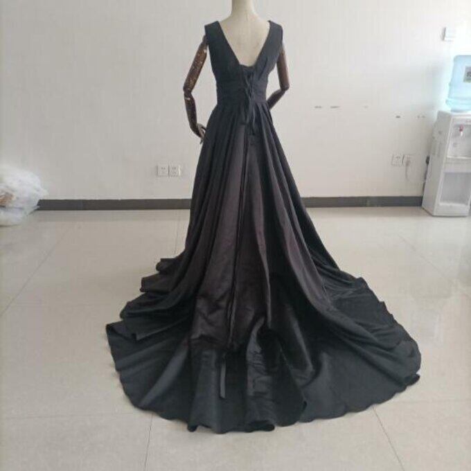 高品質!黒いサテンロングワンピース二次会ドレス クラシカル エレガント