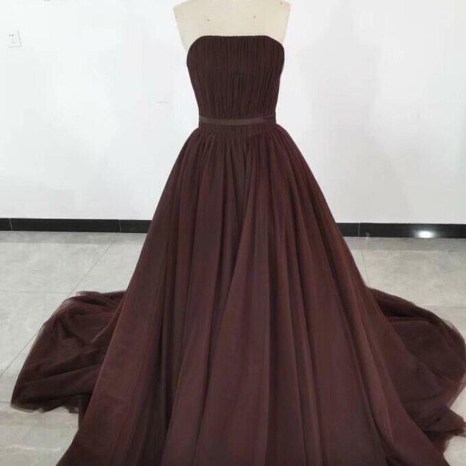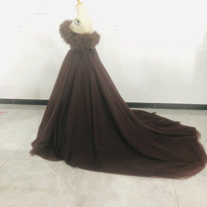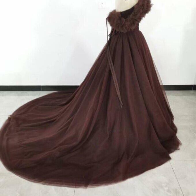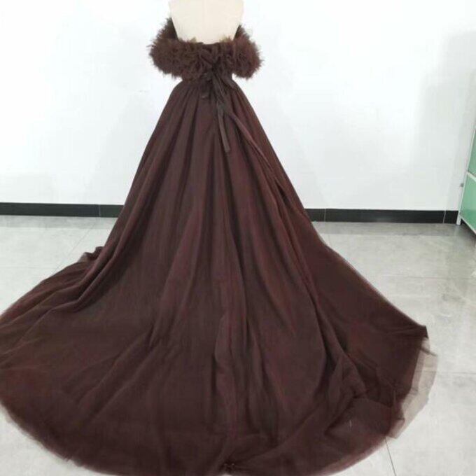 可愛い 茶 結婚式 前撮り ポンチョ ソフトチュール Aライン トレーン エレガント