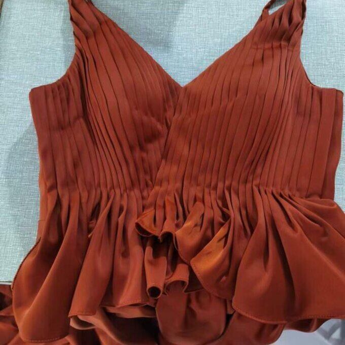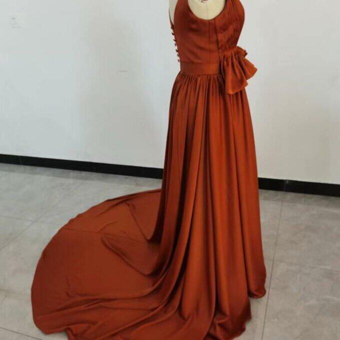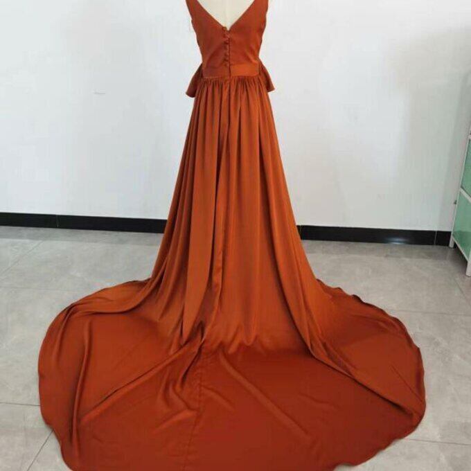 とろみシフォンサテンドレス テラコッタ お呼ばれ/二次会/前撮り
