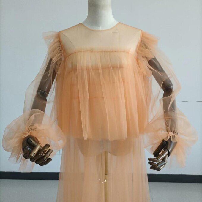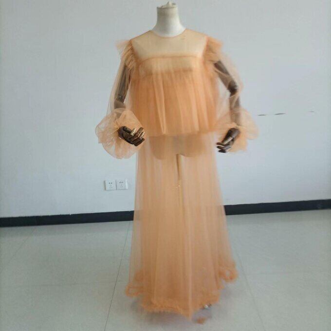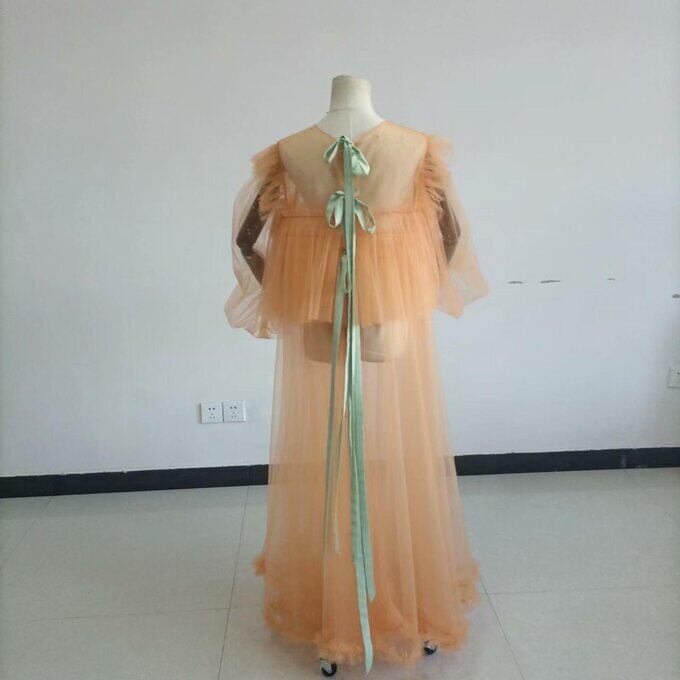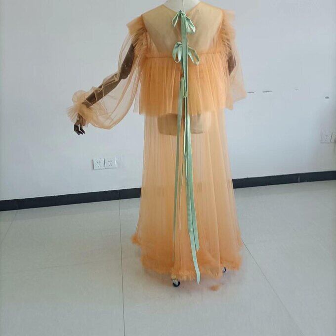 優雅なシルエット ウェディングドレス オレンジ 妊婦 ソフトチュール 花嫁/ウェディングドレス/ブライズメイド/結婚式/披露宴/