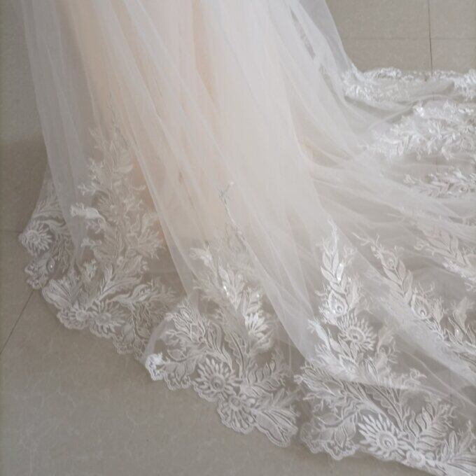 優雅なシルエット ウェディングドレス ローズピンク 花柄のモチーフ刺繍が美しく 花嫁/ウェディングドレス/