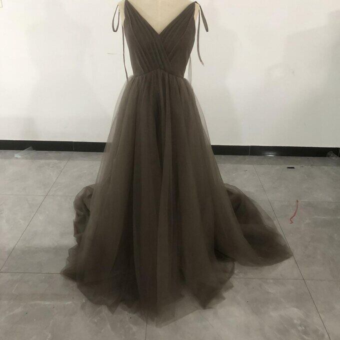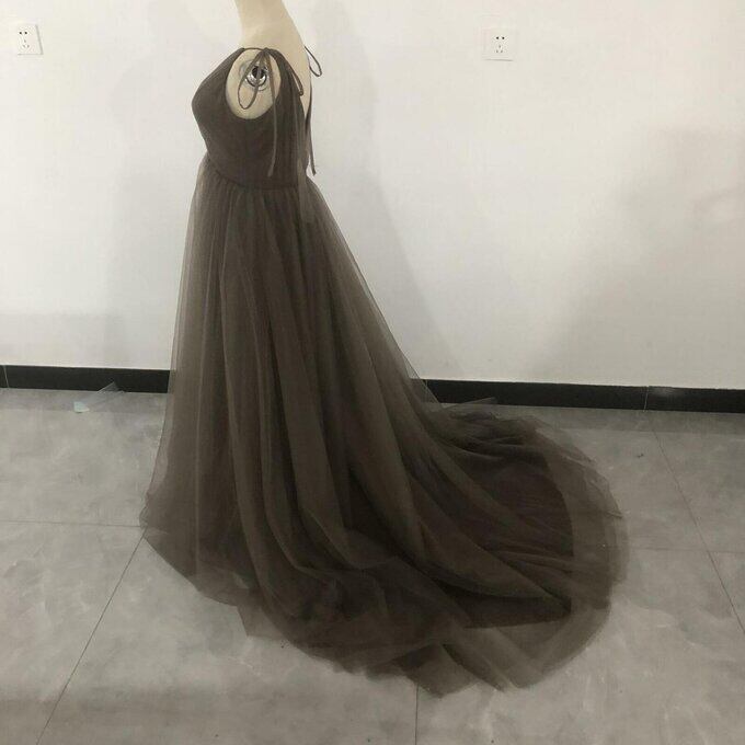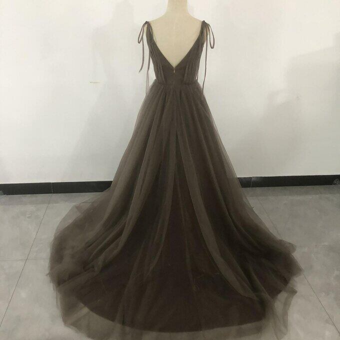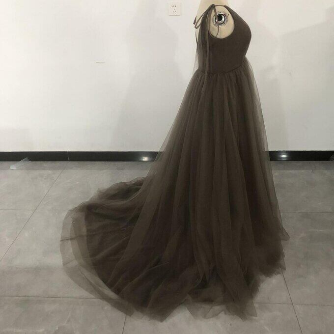 ブラウンカラードレス 前撮り 結婚式ドレス 2次会 プリンセスライン