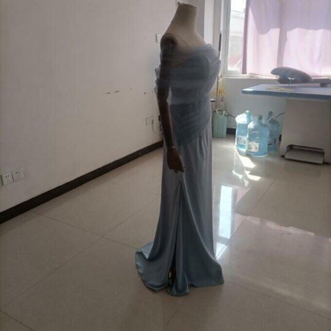 高品質! イブニングドレス 青/ブルー マーメイドライン 優雅なシルエット ファ