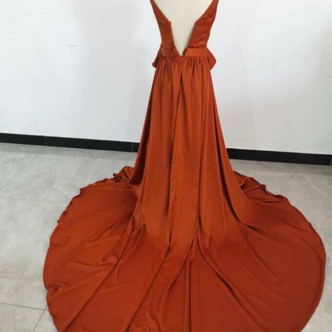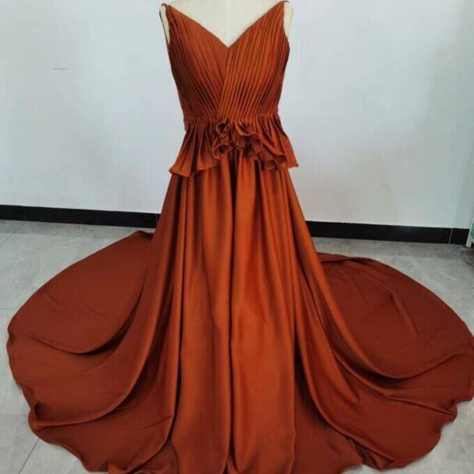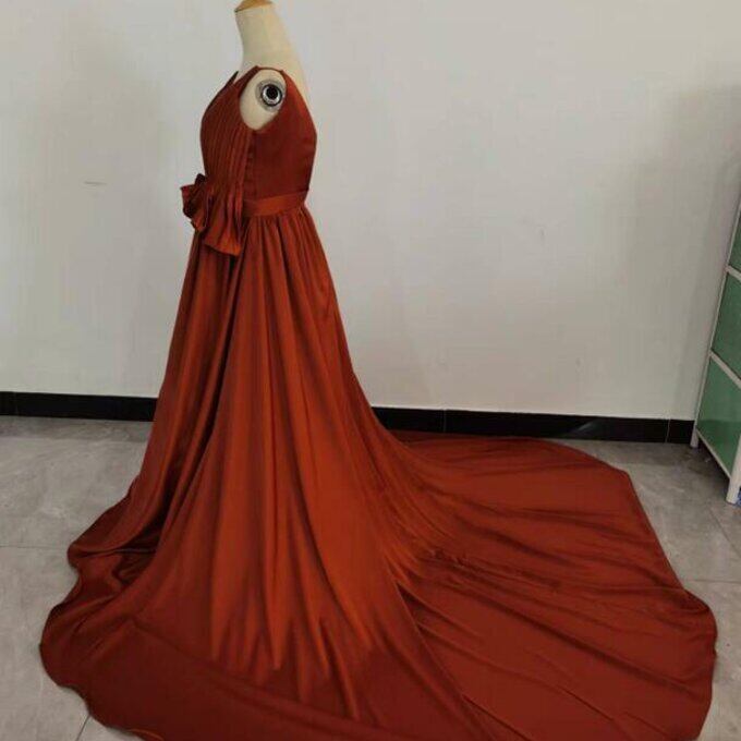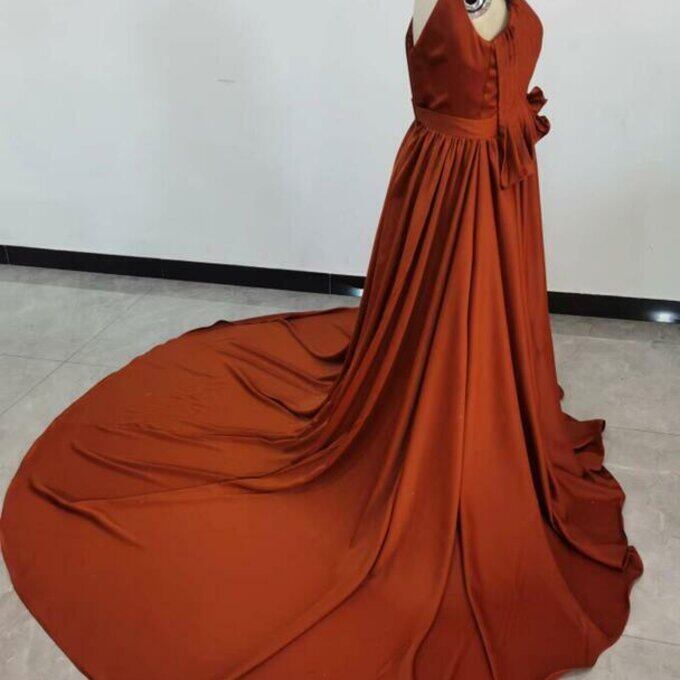 とろみシフォンサテンドレス テラコッタ お呼ばれ/二次会/前撮り