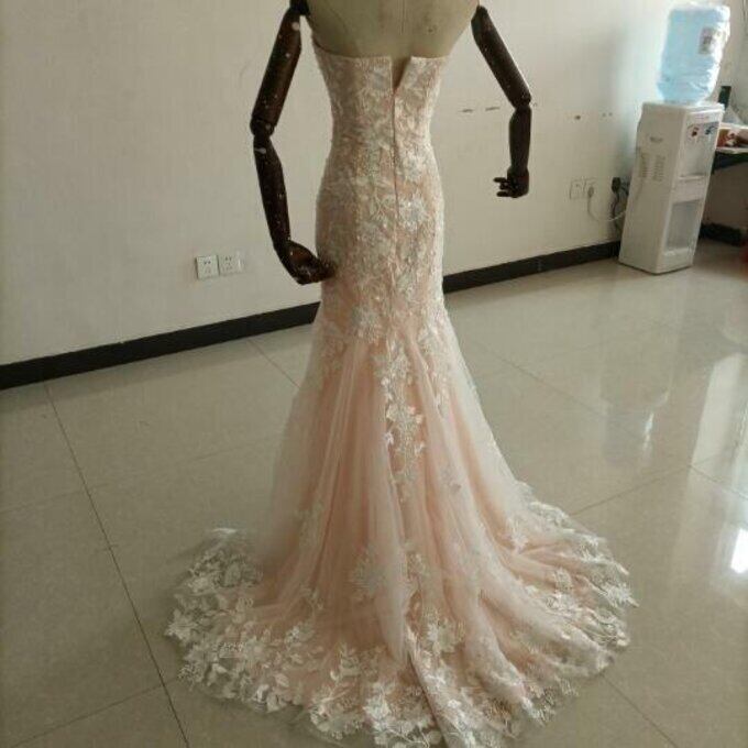 豪華! ウェディングドレス ローズピンク 花柄のモチーフ刺繍が美しく 花嫁/ウェディングドレス/ブライズメイド/結婚式/