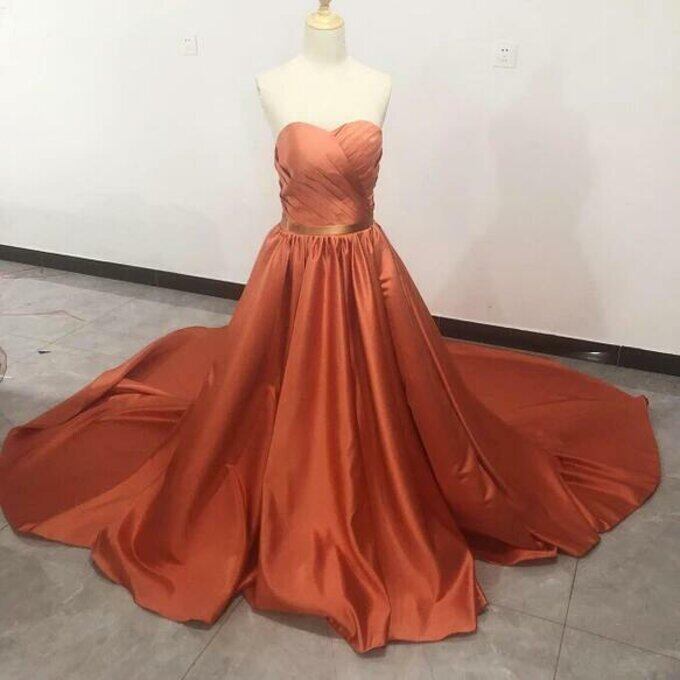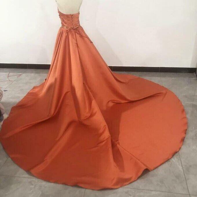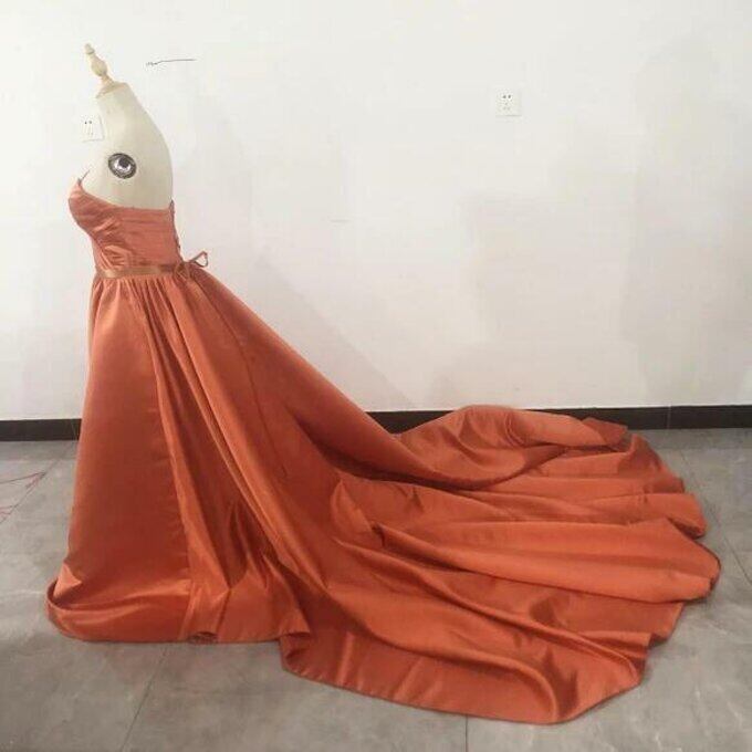 カラードレス 茶色テラコッタ ベアトップ ロングトレーン 二次会 前撮り