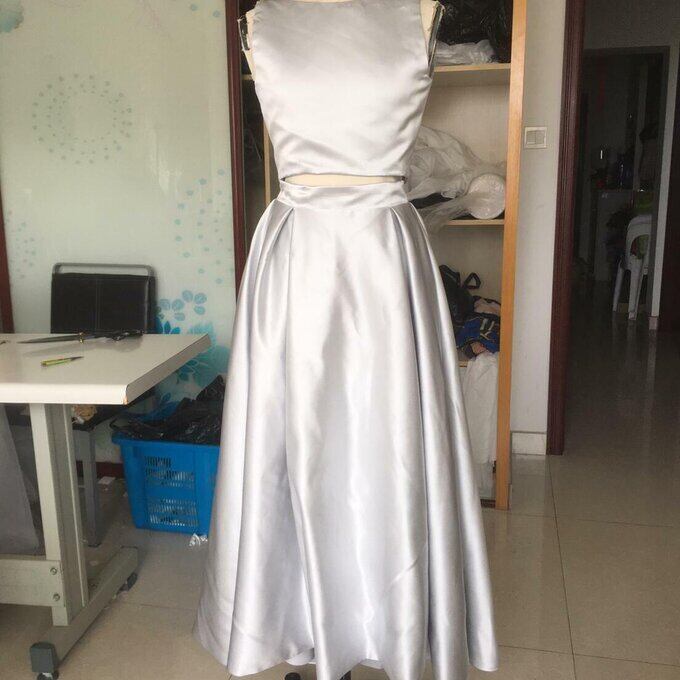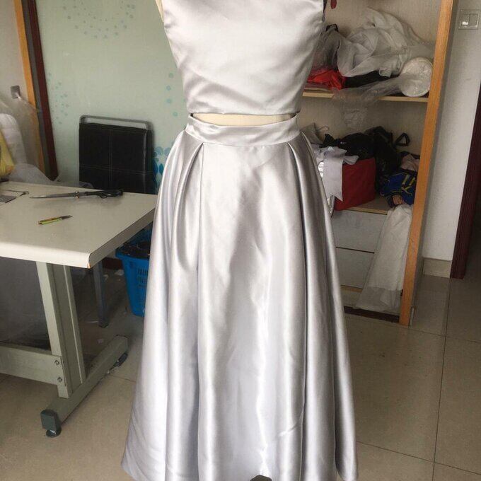 上品!ブルーグレー パーティードレス バックレス 高みせ ツーピース、セパレート お呼ばれ//合コン/デート/パーティー