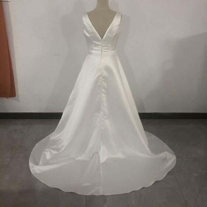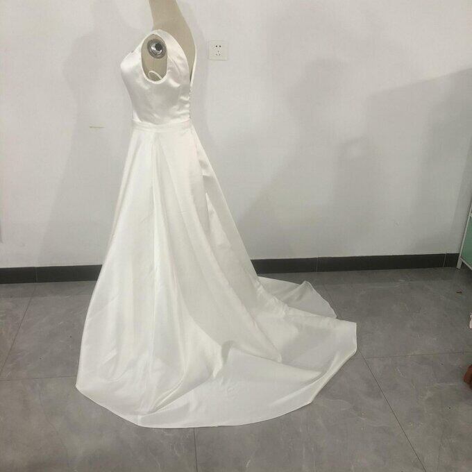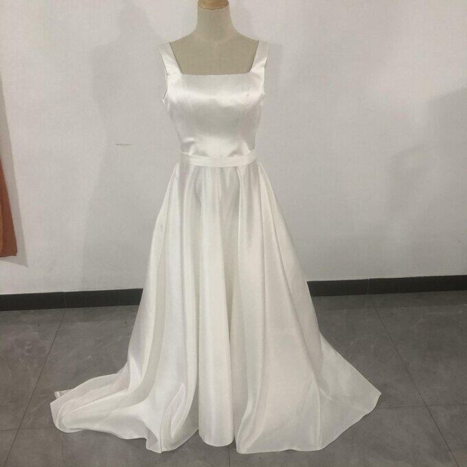 高級光沢サテン ホワイト パーティードレス スレンダーライン エンパイアライン ワンピース 結婚式/二次会/お呼ばれ