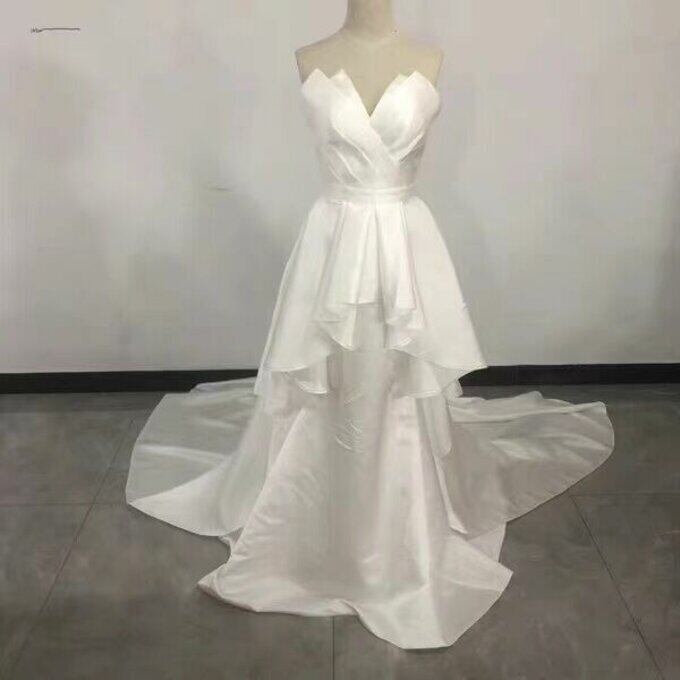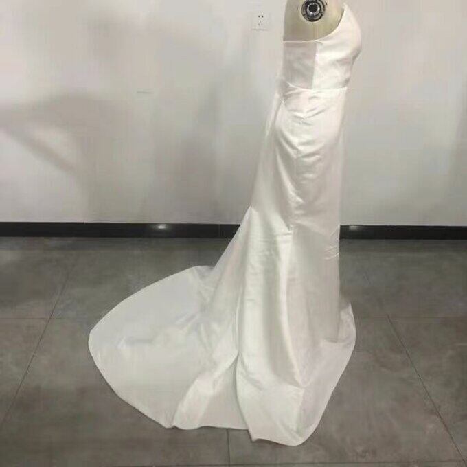 優雅 オフホワイト パーティードレス 光沢サテン ソフトマーメイドライン ベアトップ 取り外しトレーン 花嫁/結婚式/二次会