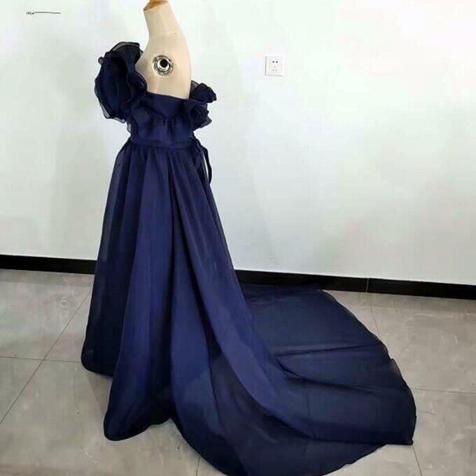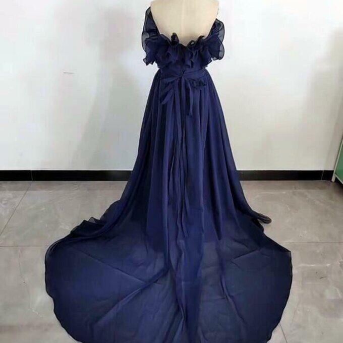 高品質!紺/ネイビー パーティードレス ベアトップ トレーン/ロング 披露宴/ お呼ばれ 高品質!紺/ネイビー パーティ