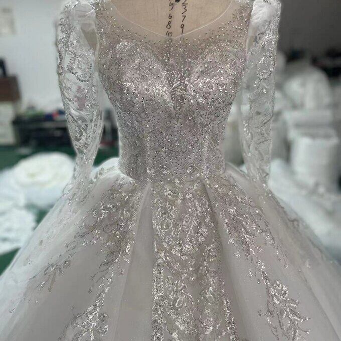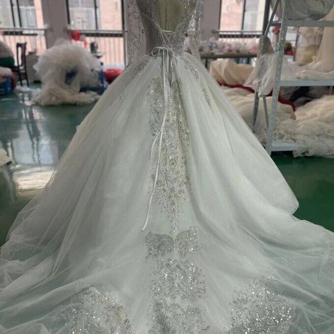 高級 ハンドメイド ウエディングドレス ビジュー パール キラキラグリッターチュール 華やかなトレーン 花嫁/ブライズメ