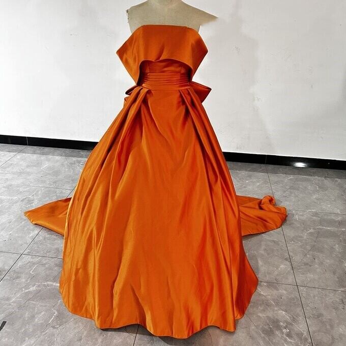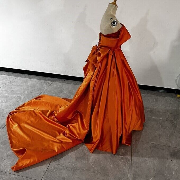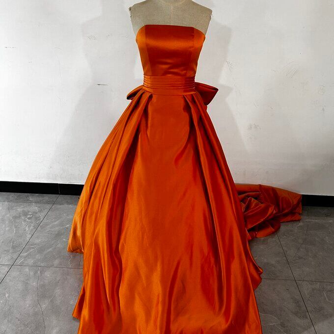 上品!テラコッタカラードレス 取り外しオフショルダー+リボン ベアトップ ロング 拳式