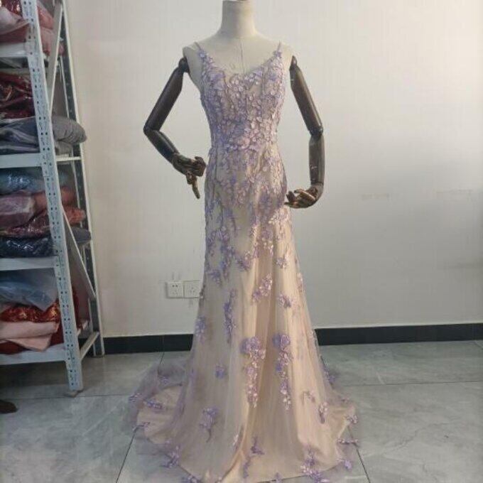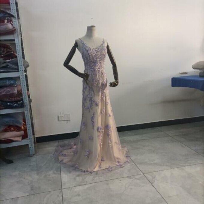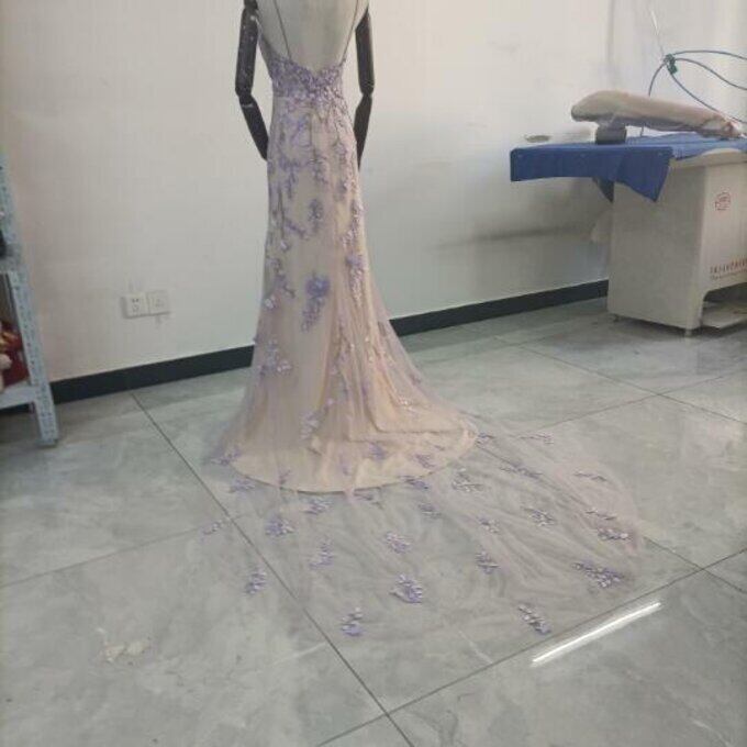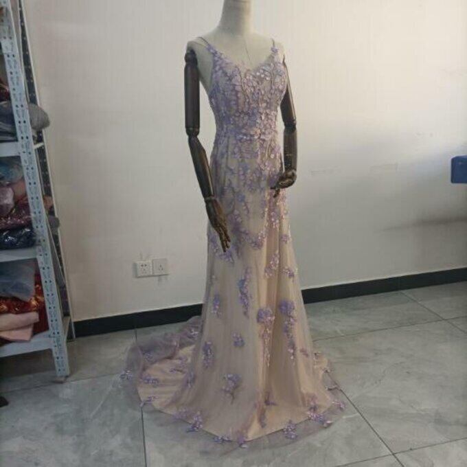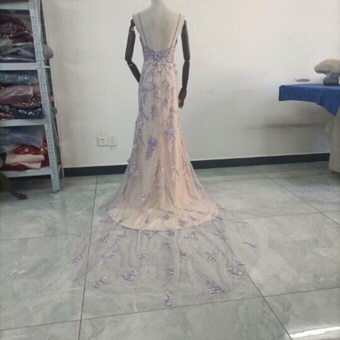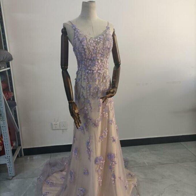 高品質!ピンクソフィアパーティードレス 枝花刺繍 キャミソール バックレス/結婚式/披露宴/二次会