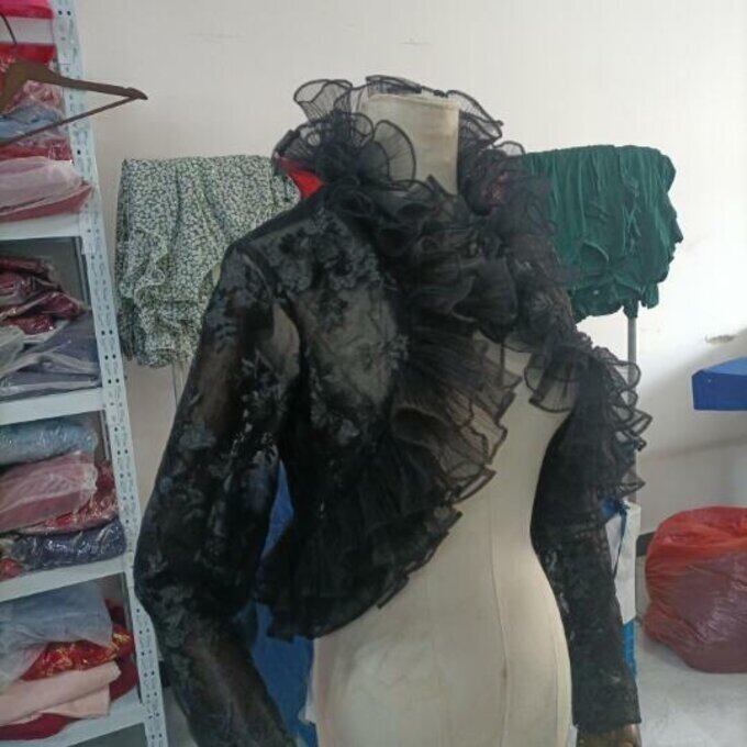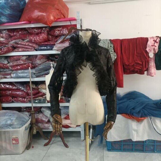 ウエディングドレス 長袖 ブラック 挙式 前撮 花嫁 可憐な花刺繍のトップス ボレロ