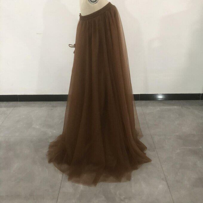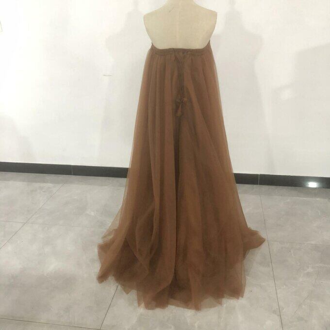 エアリー感コーヒーの色 ベアトップ揺らめく裾フレアスカートスカート 色はオーダーできます 2次会/お呼ばれ/結婚式