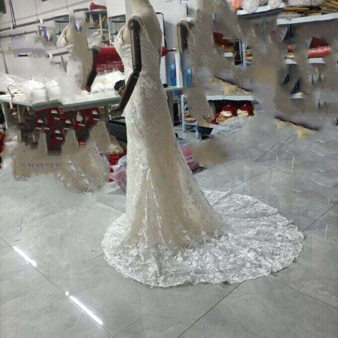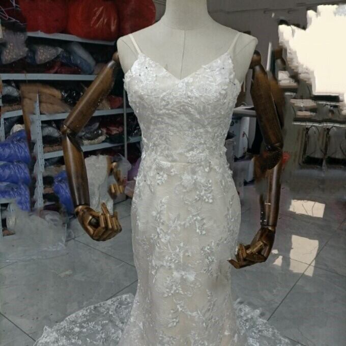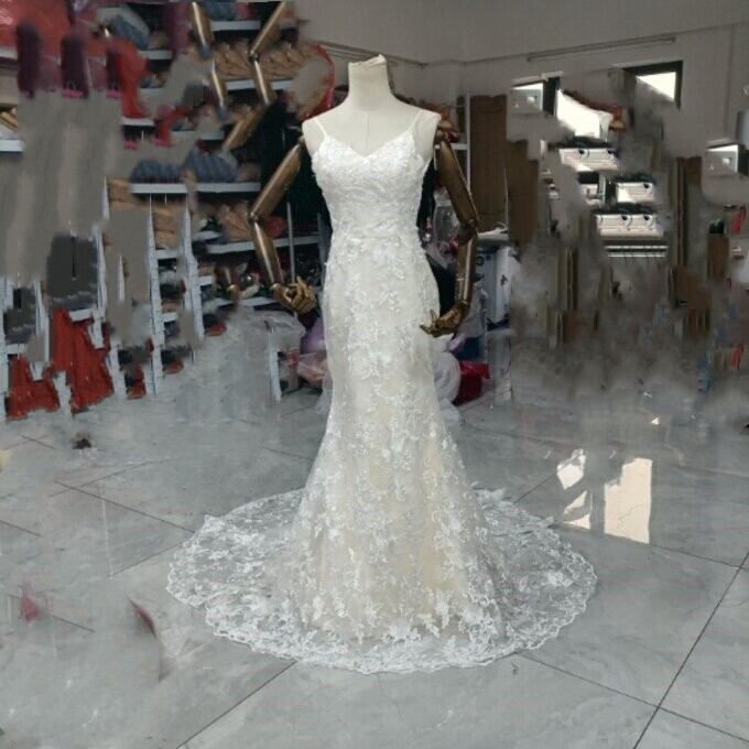 優雅なシルエット レースソフトマーメイドラインウエディングドレスパーティードレスキャミソール花嫁/結婚式/披露宴