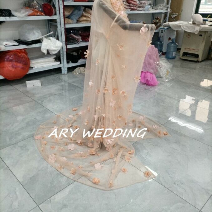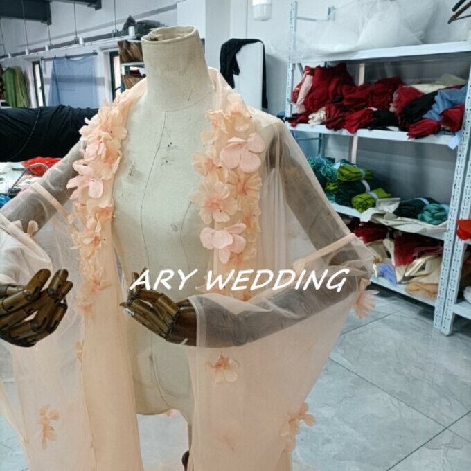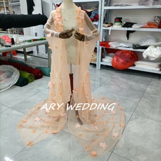 ライトベージュ チュール打掛 着物 オーバードレス 花モチーフ ウエディングドレス お色直し うす衣 花嫁和装 色打掛