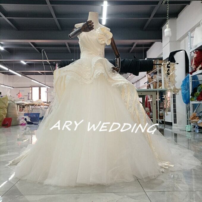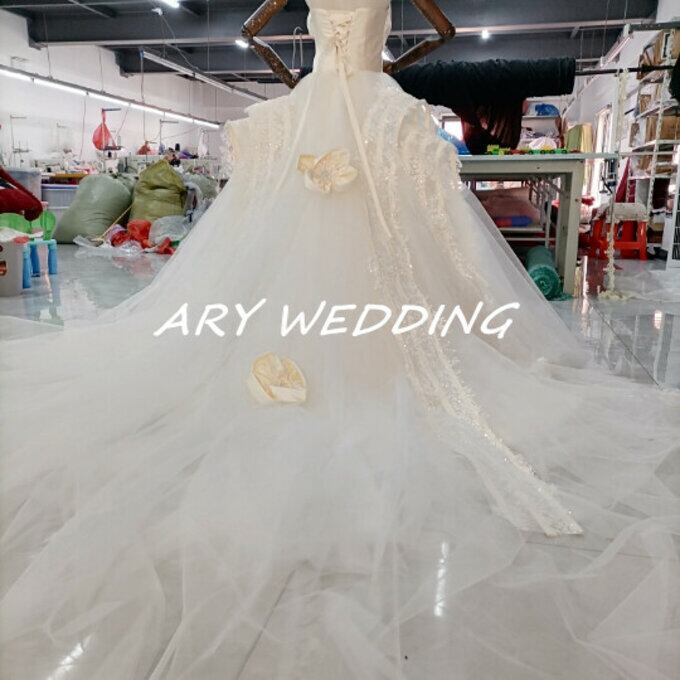 豪華!ウエディングドレス ベアトップ 華やかなトレーン 高級刺繍 花嫁/ウェディングドレス/ブライズメイド/結婚式/