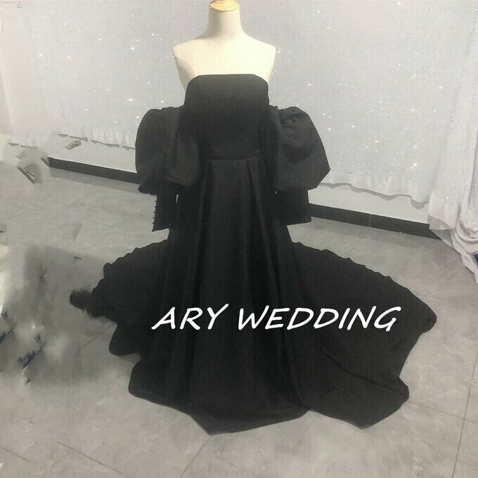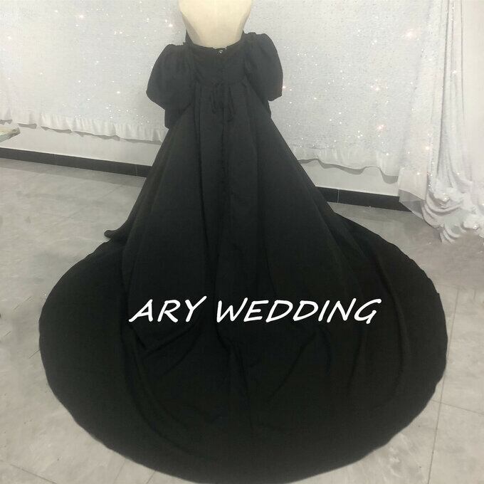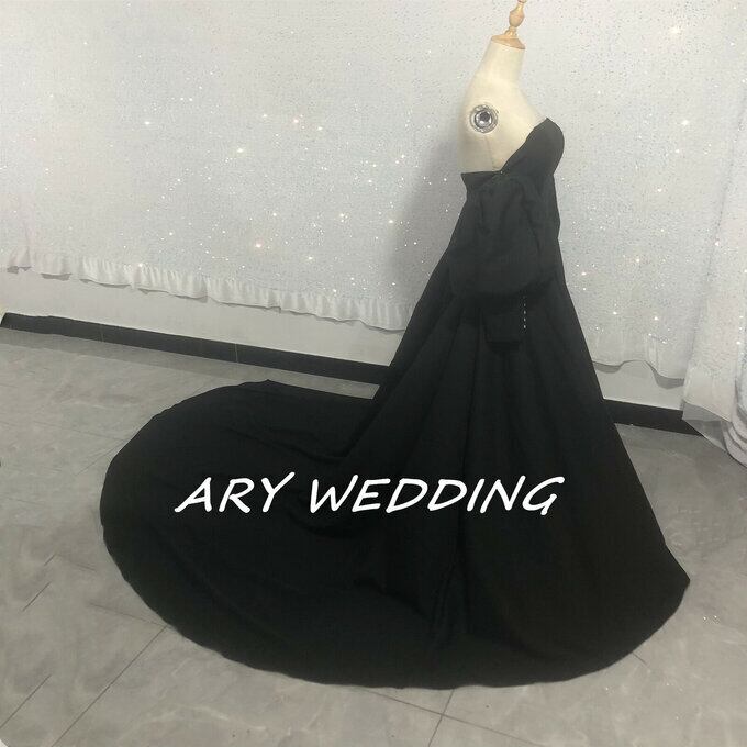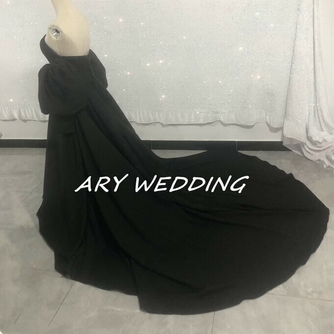人気上昇 クレープ生地オフショル パーティードレス 黒 ロングトレーン 二次会 挙式 前撮り 憧れのドレス