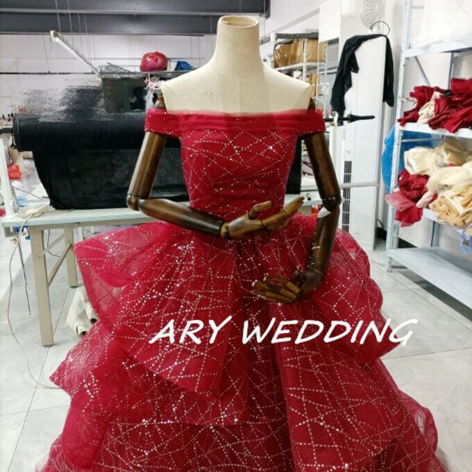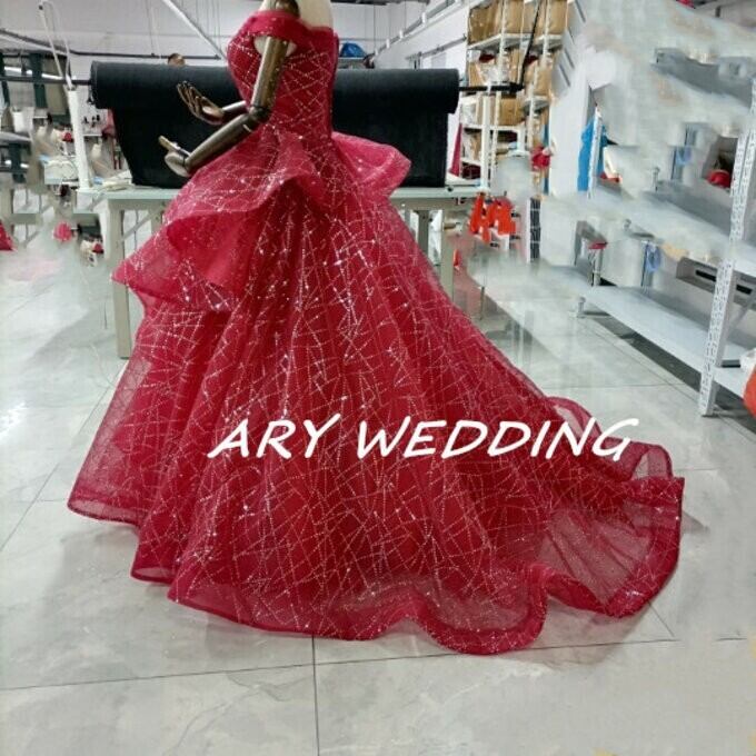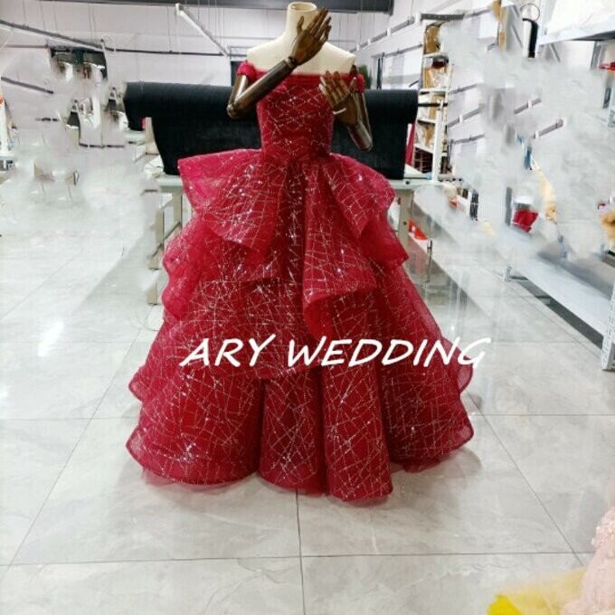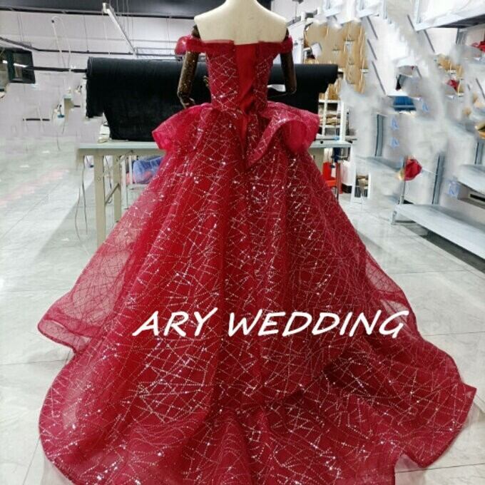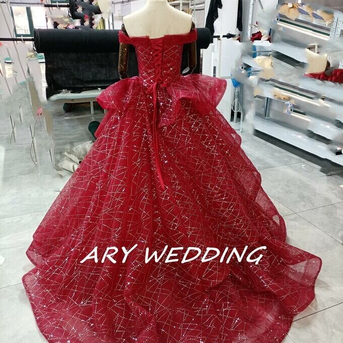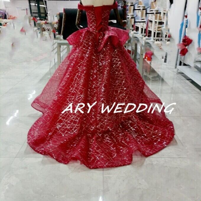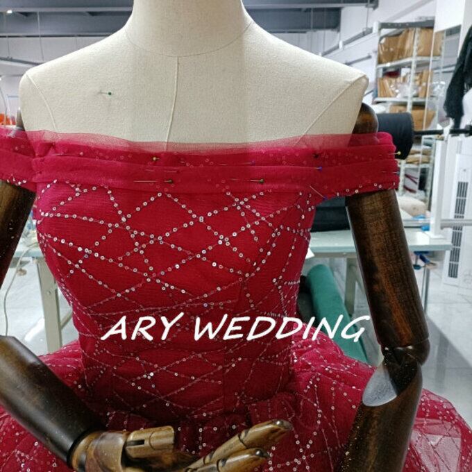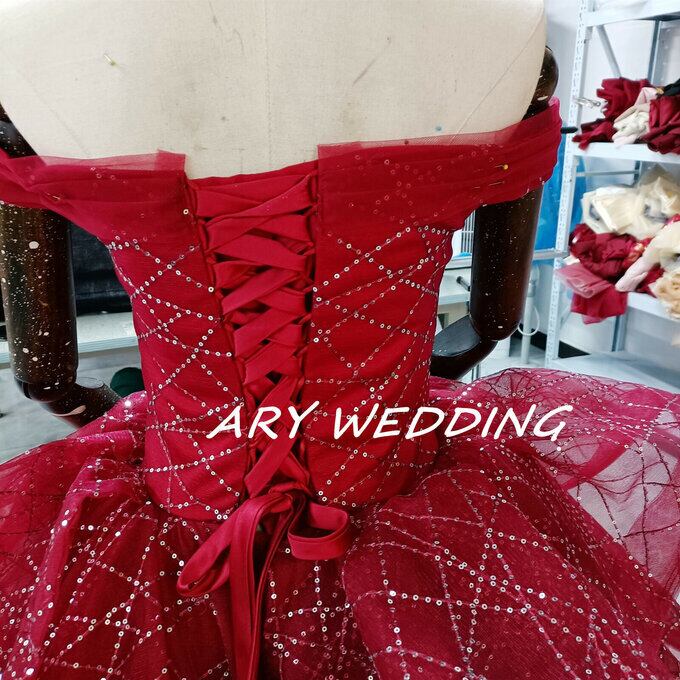 豪華!パーティードレス ワインレッド オフショル キラキラチュール 憧れのドレス 謝恩会 結婚式