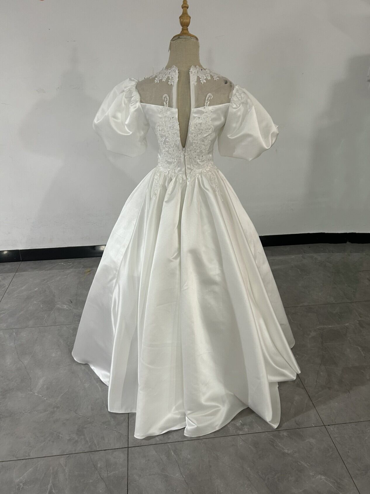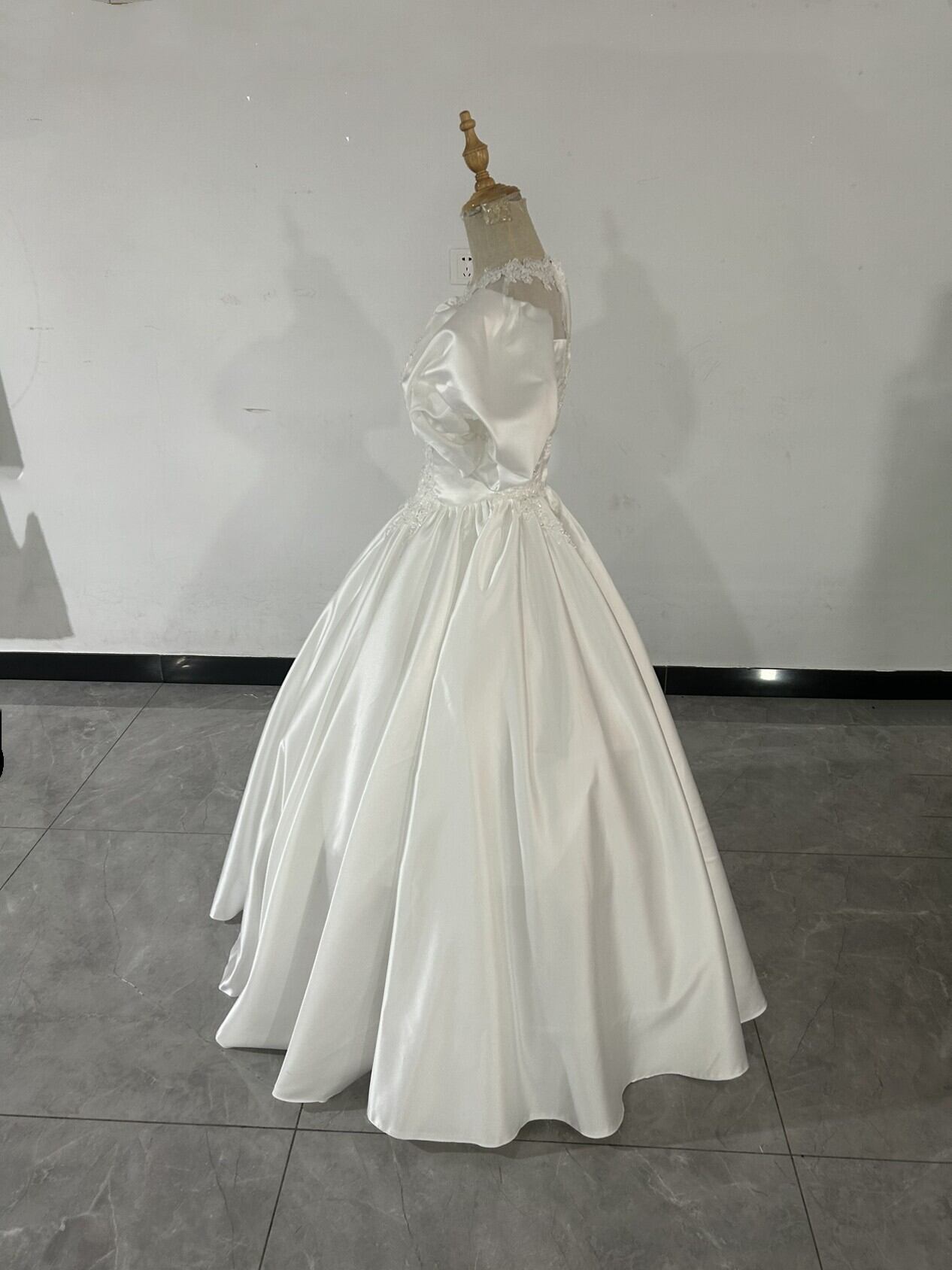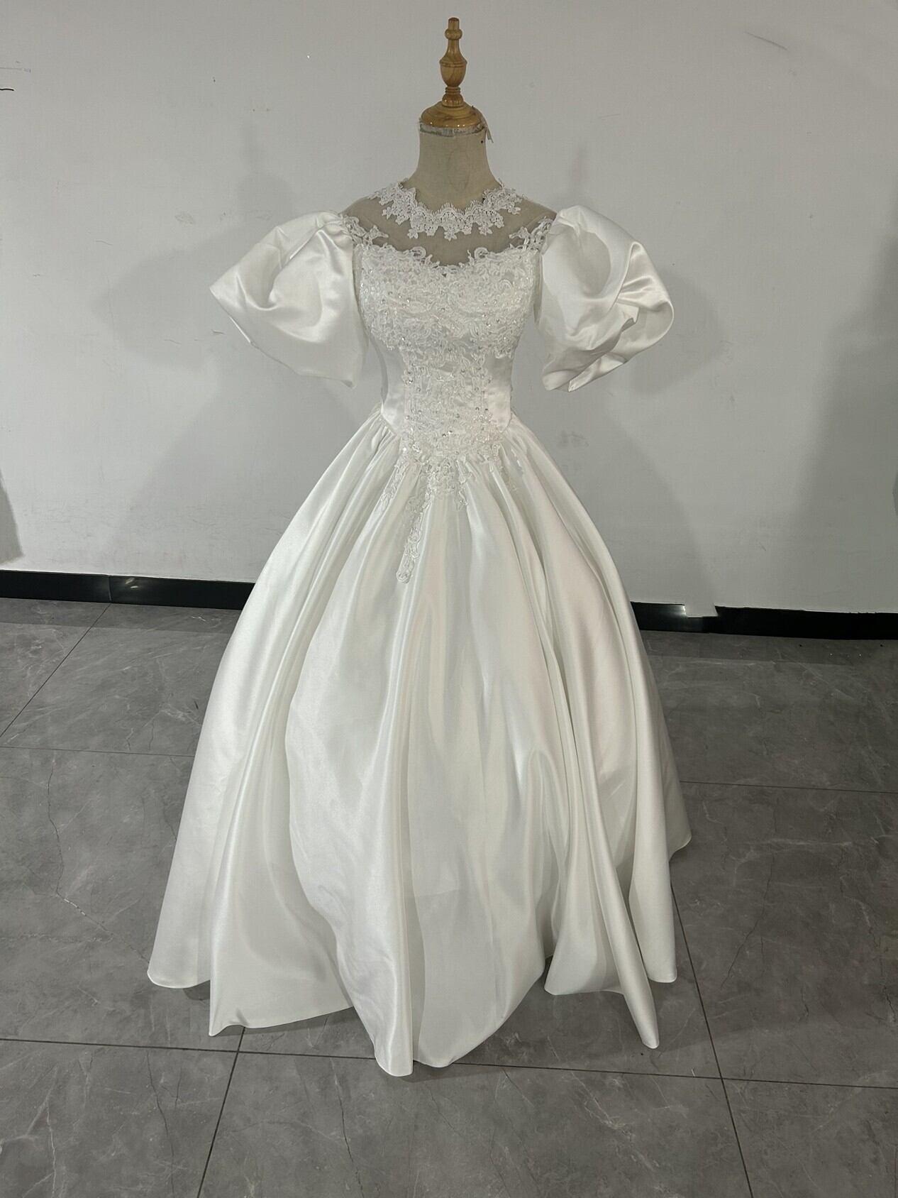 レトロパフスリーブ手作りビーズクラシカルプリンセスラインウェディングドレス結婚式 二次会ドレス