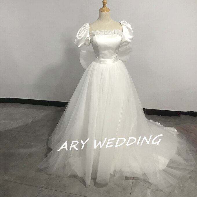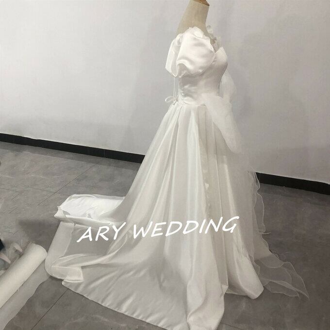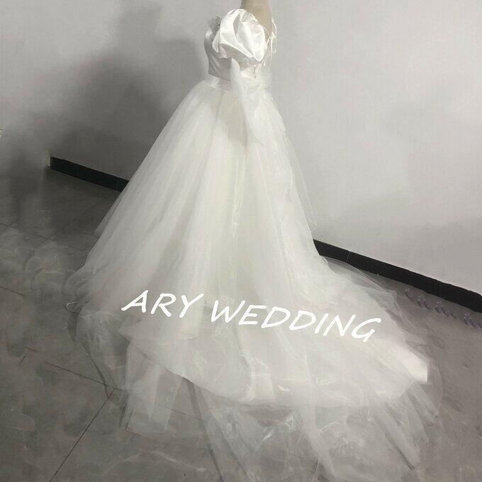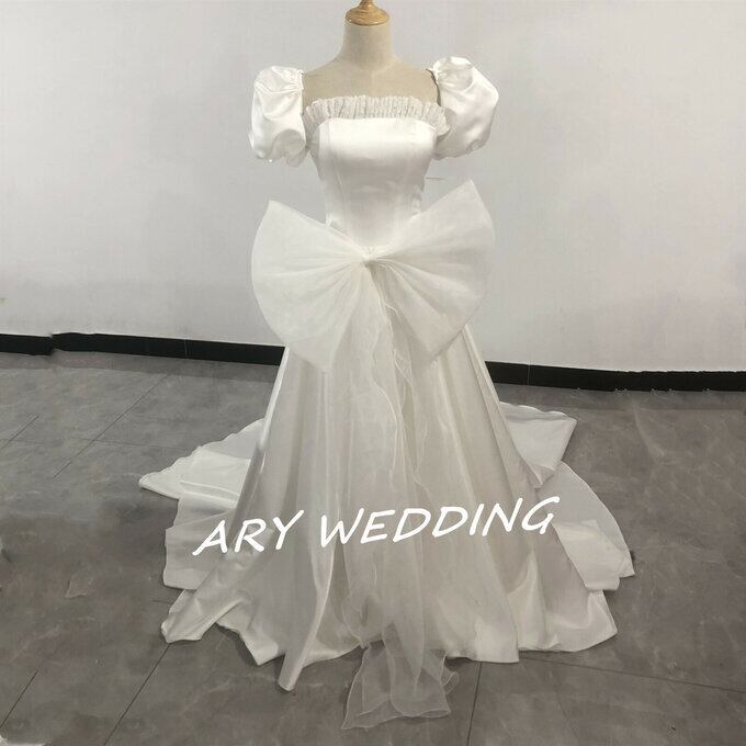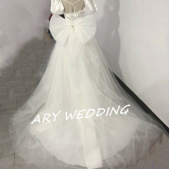 豪華!花嫁 ウエディングドレス 取り外し可能大きなリボン + 取り外し可能 オーバースカート 憧れのドレス 挙式