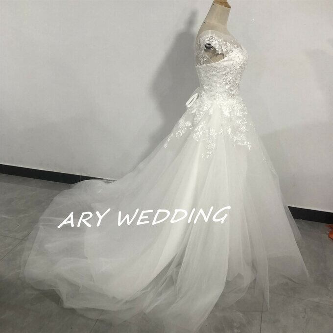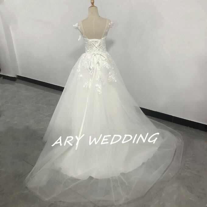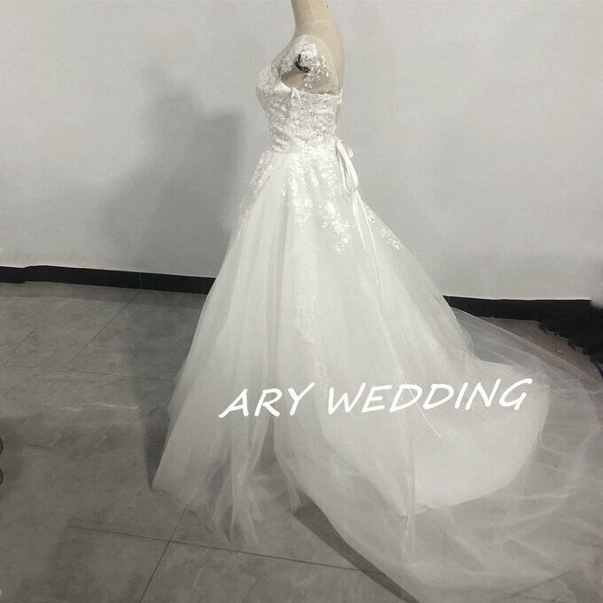 豪華!ウエディングドレス オフショル レース 華やかなトレーン プリンセスライン 挙式