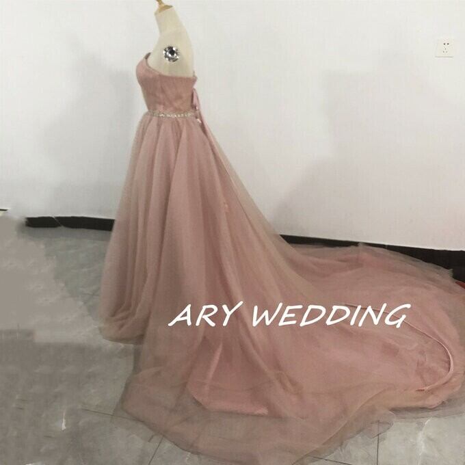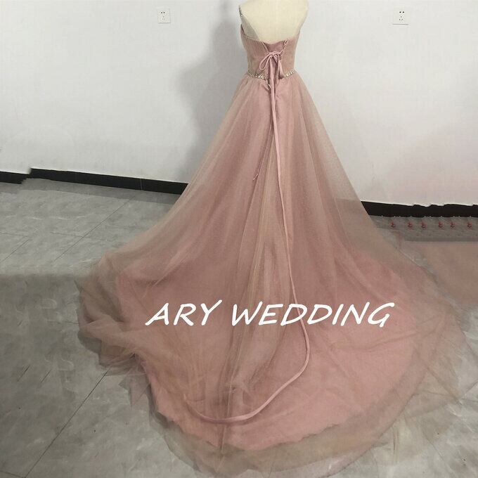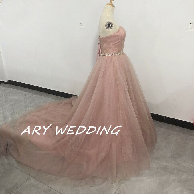 高品質!カラードレス 薄ピンク ベアトップ キラキラグリッターチュール 憧れのドレス 披露宴/挙式
