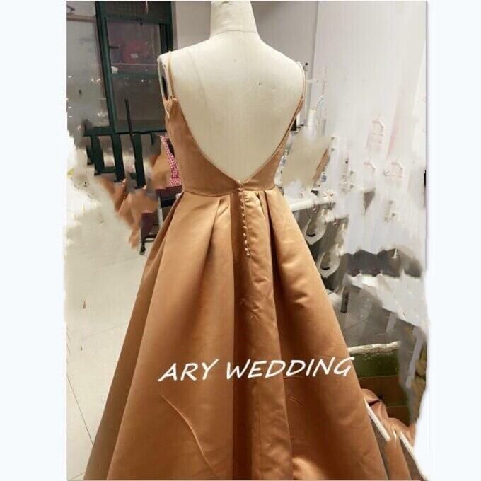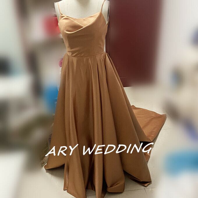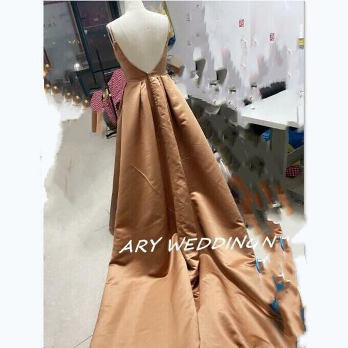 キャミソール パーティードレス カーキ色 ロングトレーン 前撮り ロングドレス 2次会 挙式