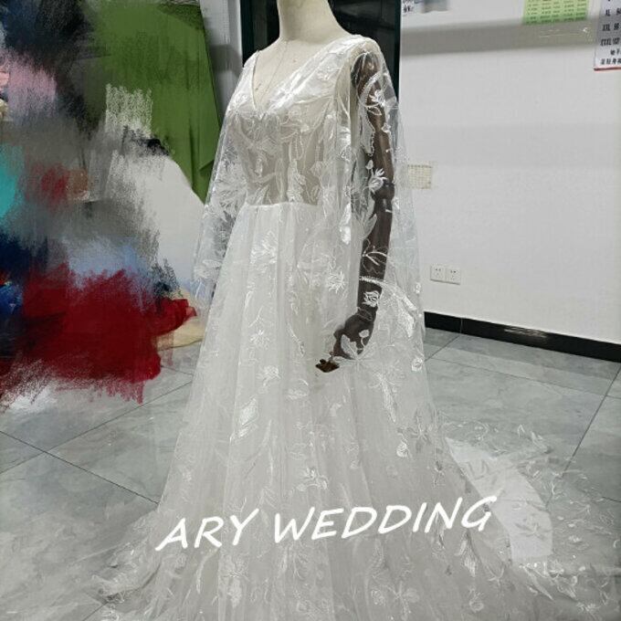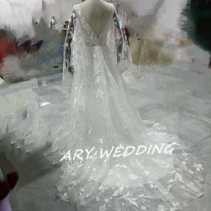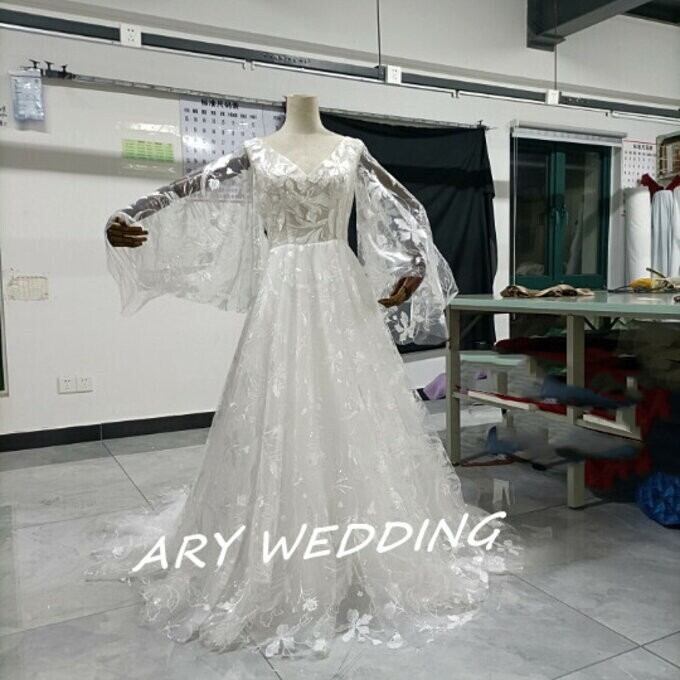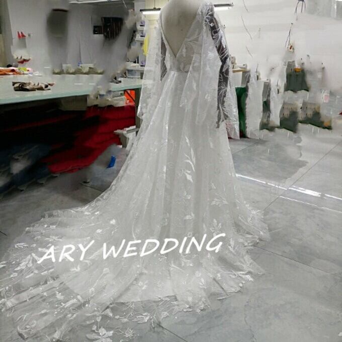 贅沢な小花総レース ウェディングドレス 背中見せ エレガント 前撮り 披露宴/挙式