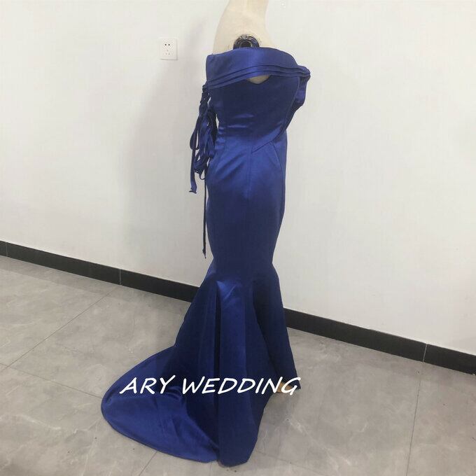 カラードレス 青/ブルー 光沢サテン オフショル マーメイドライン エレガント 美品!イブニングドレス 二次会