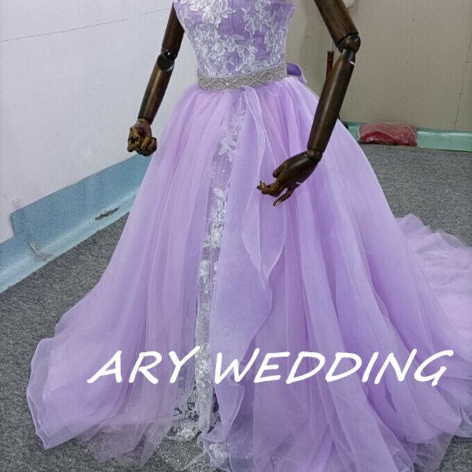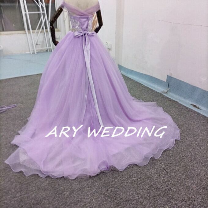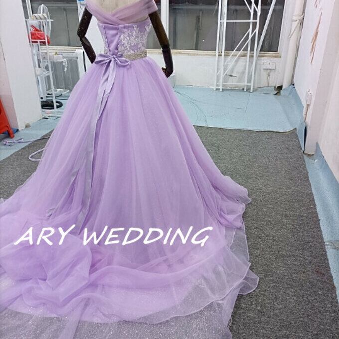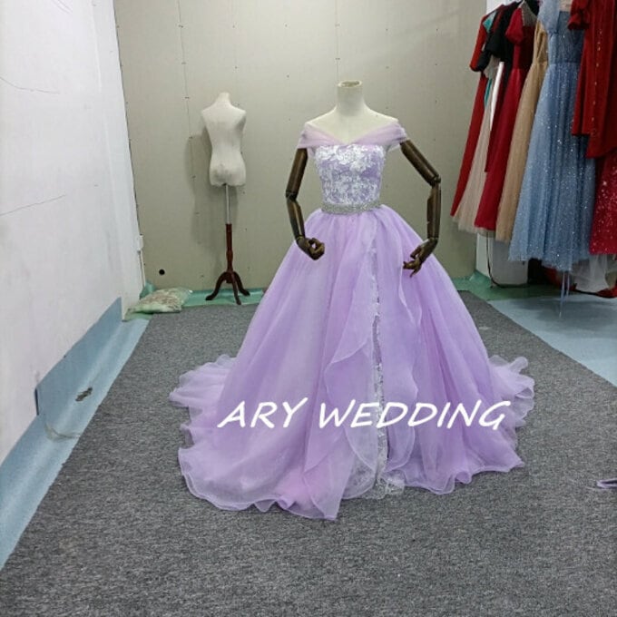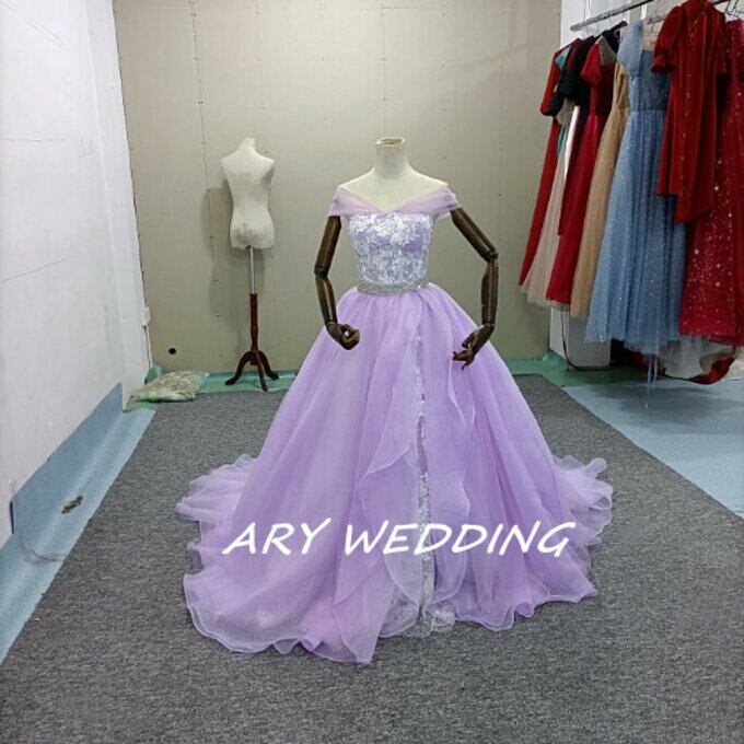 大人気上昇 カラードレス 紫 取り外し可能オフショル プリンセスライン 2次会 結婚式/披露宴/挙式