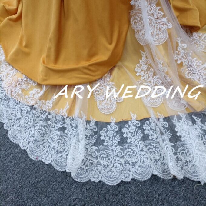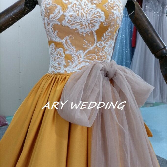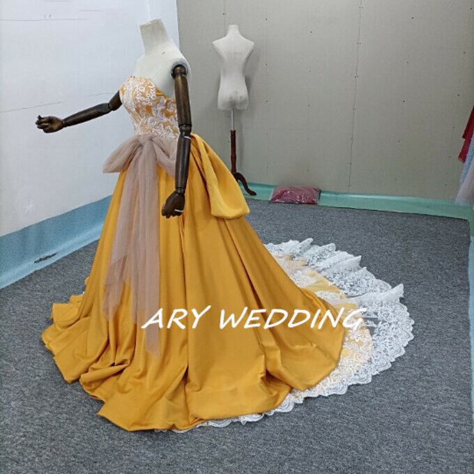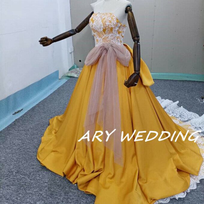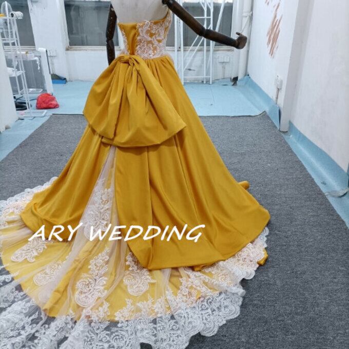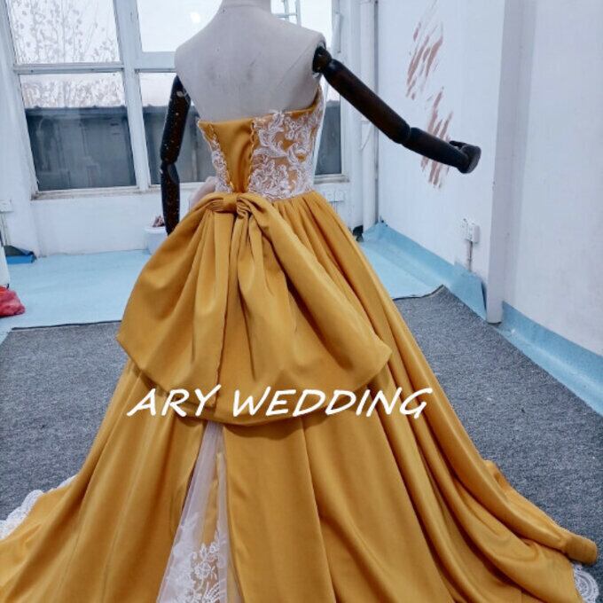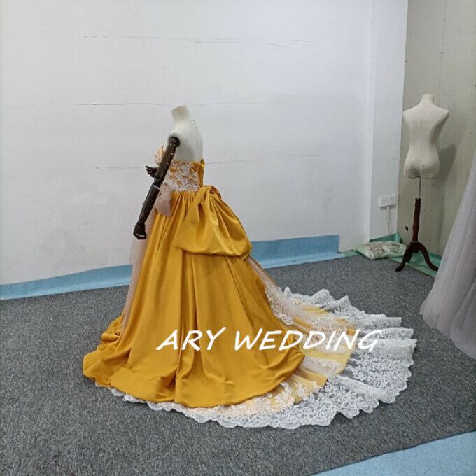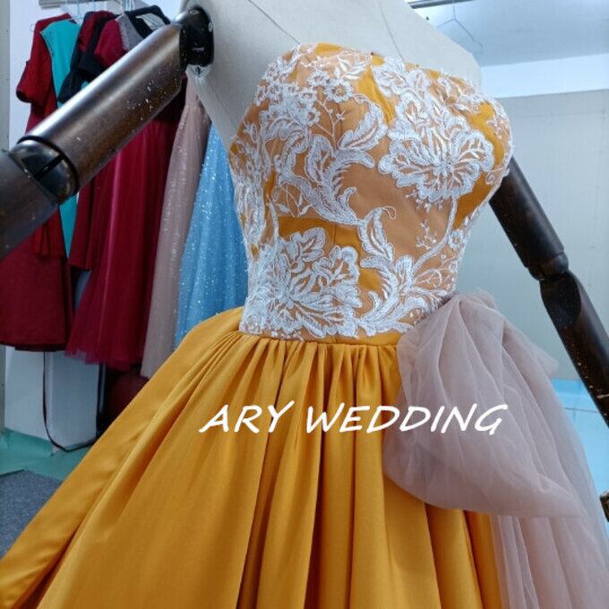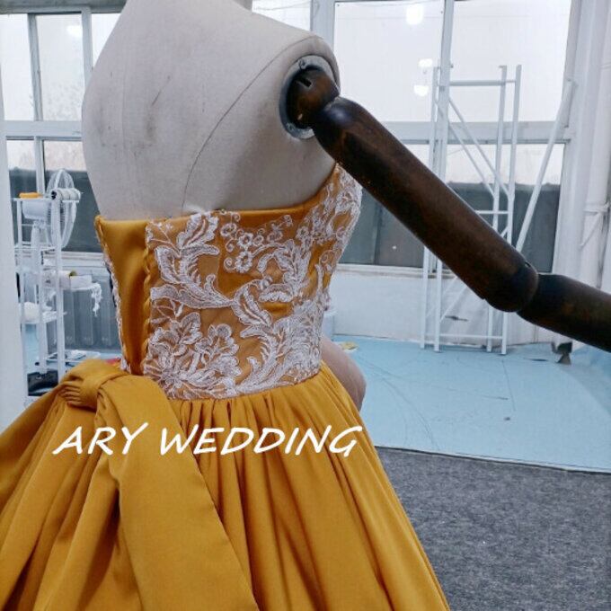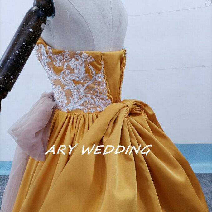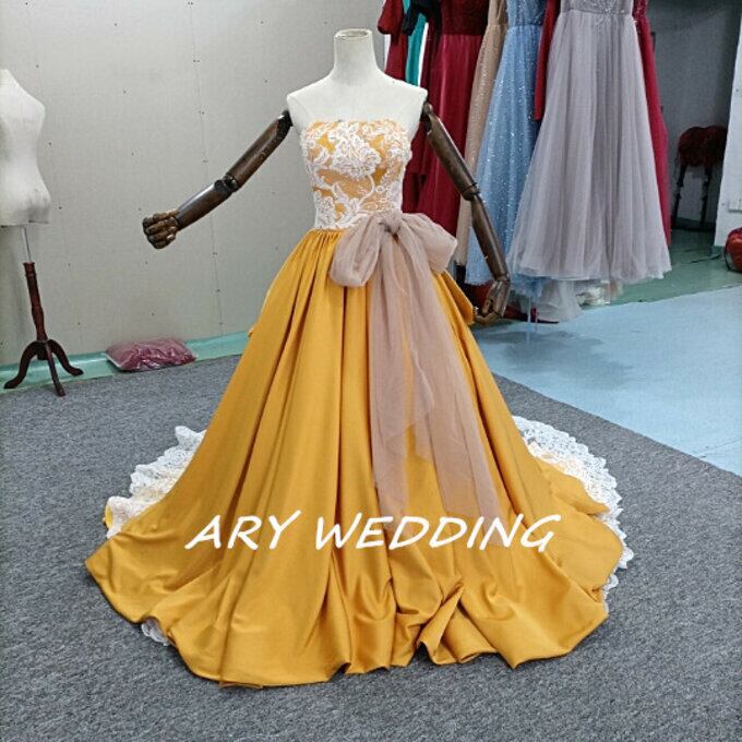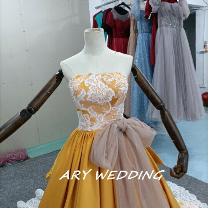 フランス風 カラードレス 暗い黄色 ベアトップ 憧れのドレス華やか エレガント 前撮り結婚式/披露宴/挙式