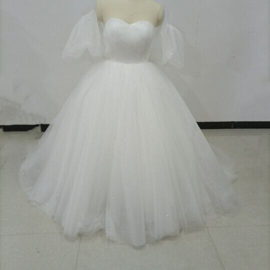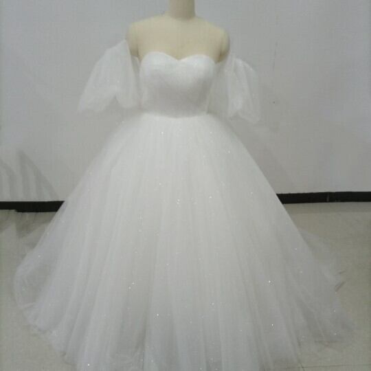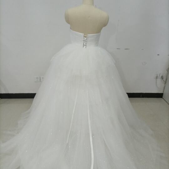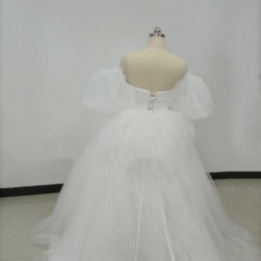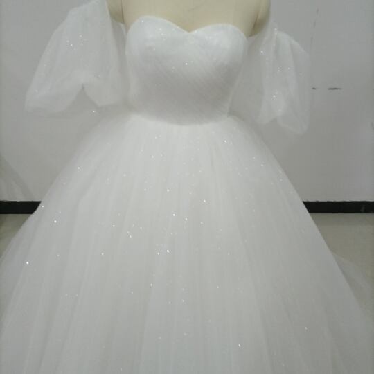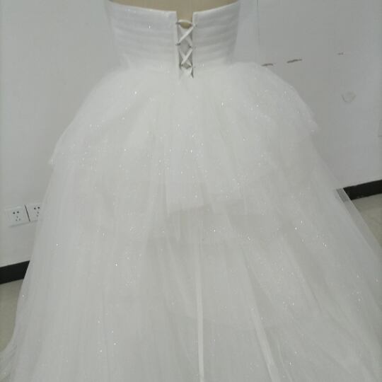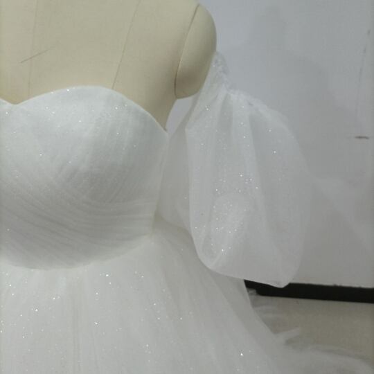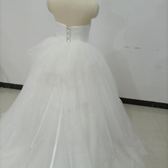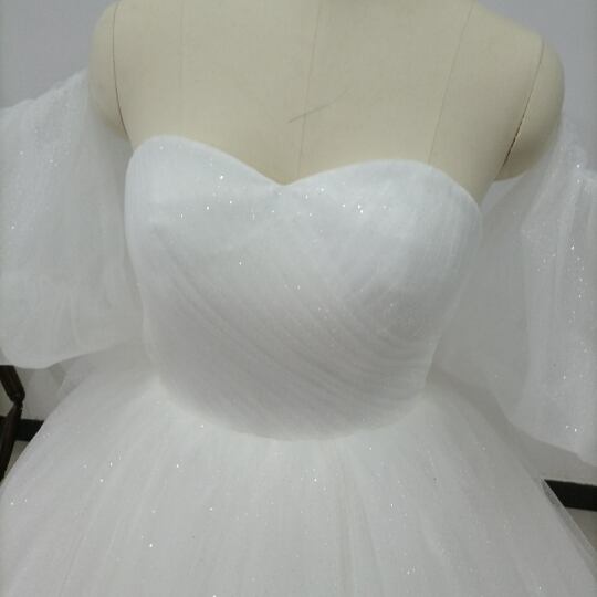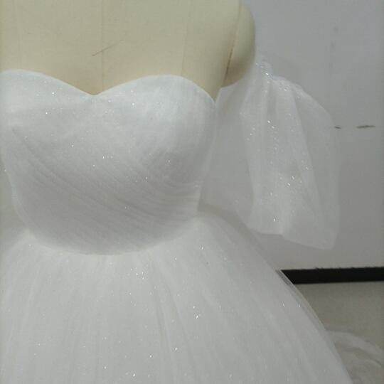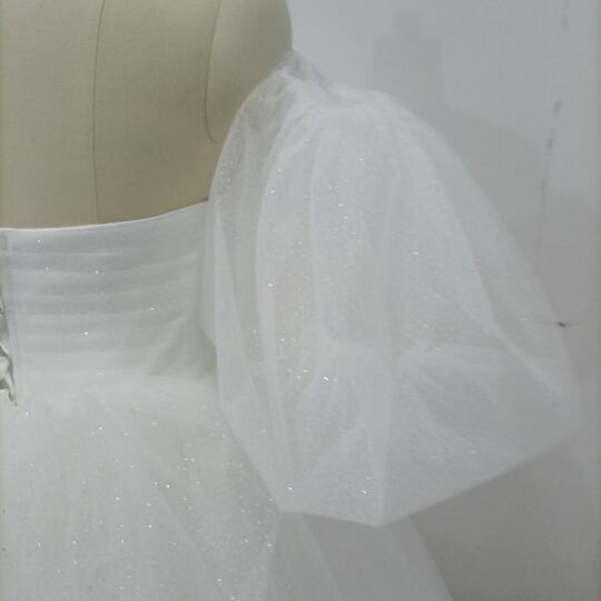 美品!ウエディングドレキラキラグリッターチュール ふっくら柔らかなバックリボン プリンセスライン /花嫁/結婚式