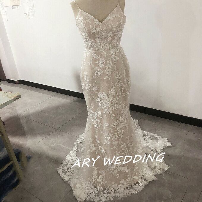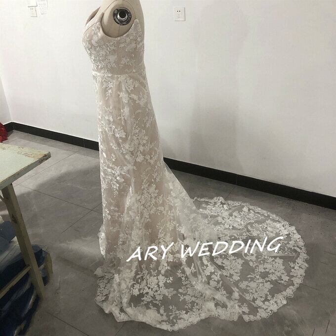 花柄刺繍 フィッシュテール 薄シャンパンの色 ウエディングドレス 二次会 パーティードレス