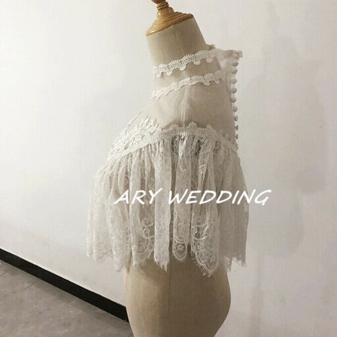 ケープ、マント ウエディングドレス ハイネック 可憐な花刺繍のトップス ボレロ 結婚式 花嫁