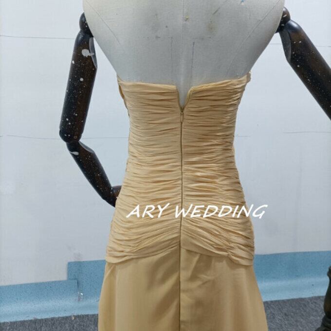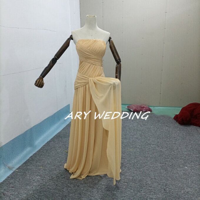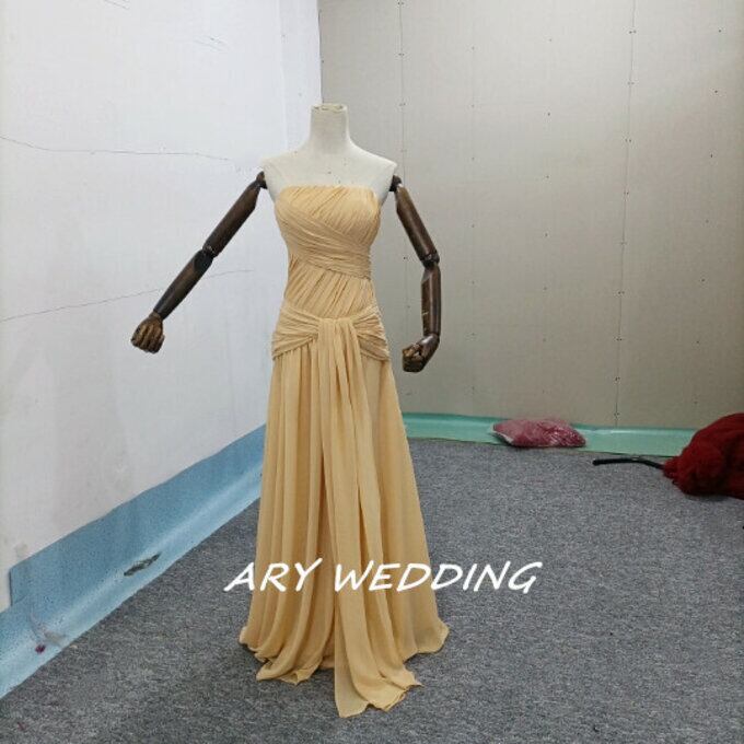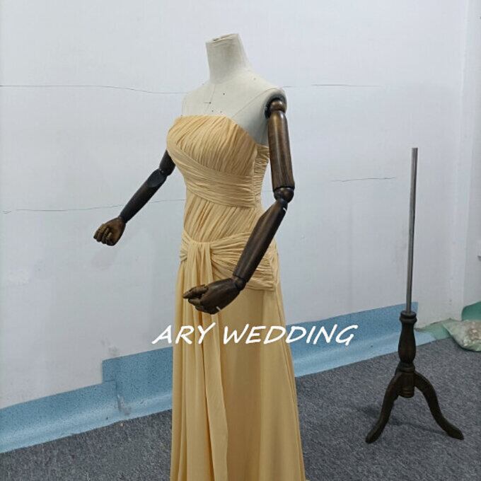 大人気上昇 パーティードレス 薄イエロー ベアトップ フソフトチュール 床付 ロングドレス 2次会/合コン