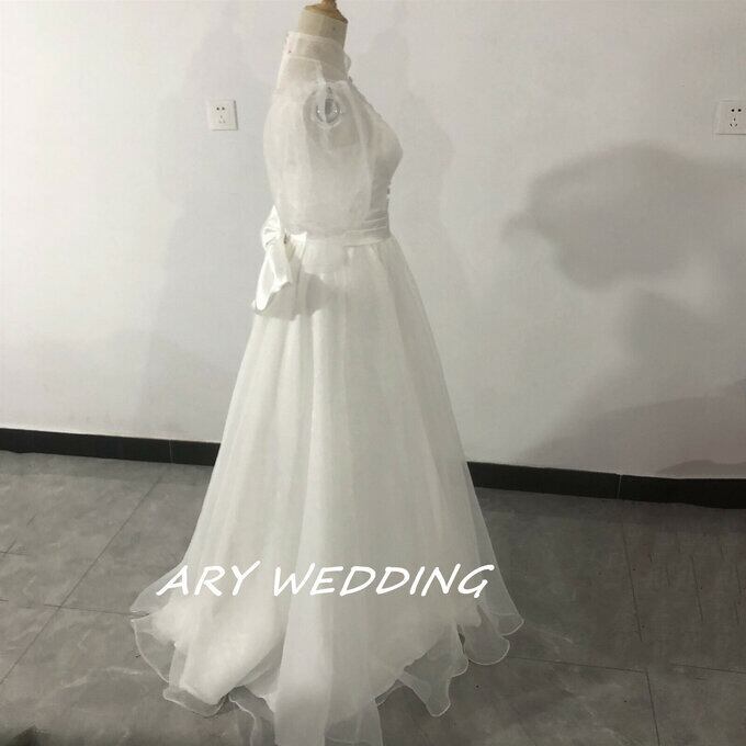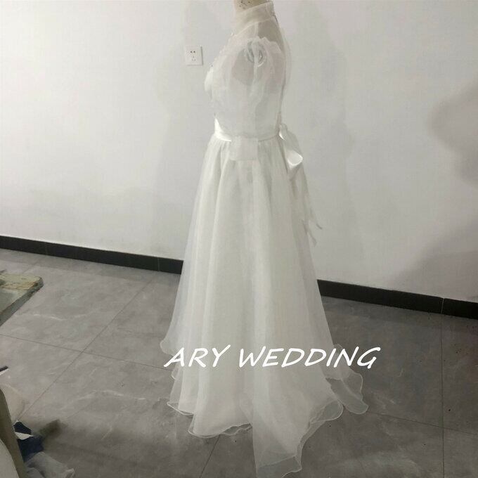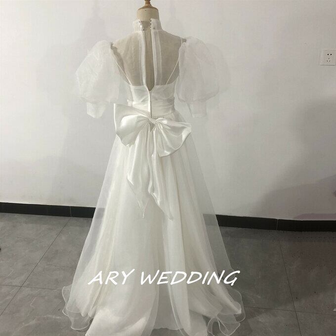 フランス風 パーティードレス オフホワイト パフスリーブ 上質オーガンジー プリンセスライン 挙式 2次会